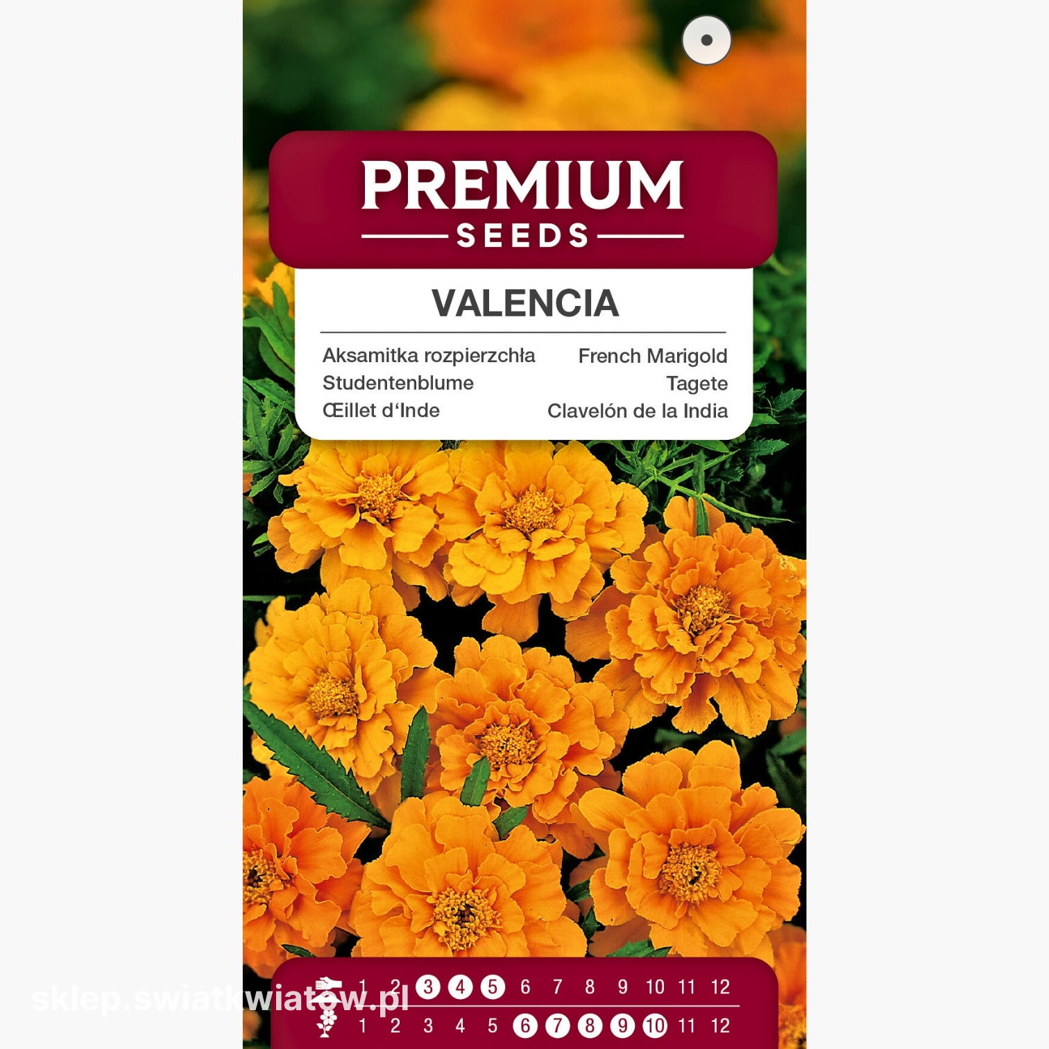 Aksamitka Valencia kwitnie nieprzerwanie od czerwca aż do października. W tym czasie jej pomarańczowe kwiaty stanowią wspaniałe uzupełnienie każdej kompozycji ogrodowej - od klasycznych rabat po nowoczesne zestawienia w pojemnikach. Roślina zachowuje świeżość i intensywny kolor nawet w gorące dni, dzięki odporności na upał i krótkotrwałe przesuszenie.