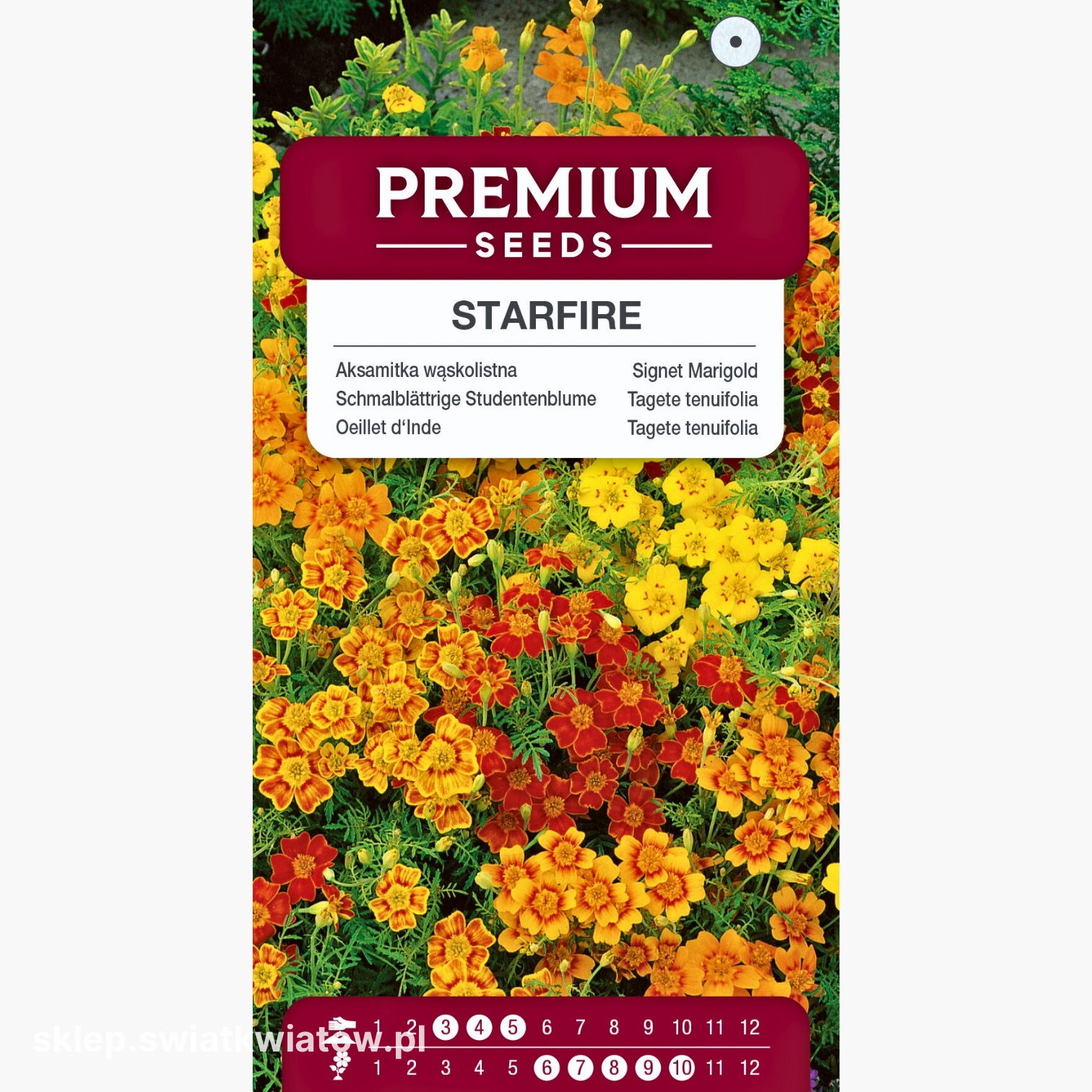 Aksamitka Starfire kwitnie nieprzerwanie od czerwca do października, tworząc barwny dywan, który rozświetla ogród nawet w pochmurne dni. To jedna z najbardziej wdzięcznych roślin, które zapewniają długotrwały, intensywny efekt dekoracyjny.