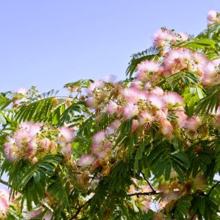Albicja to bardzo ciekawa i niezwykle ozdobna roślina wieloletnia, w naszym klimacie uprawiana jako doniczkowa, a latem czasami wystawiana na balkony i tarasy. Posiada charakterystyczne, ciemnozielone liście, bardzo przypominające liście niektórych paproci. Oprócz liści ozdobę stanowią również jej kwiaty - biało-różowoczerwone pióropusze. Całość przybiera pokrój niedużego drzewka. Albicja bardzo często nazywana jest jedwabnym drzewem lub drzewkiem szczęścia.