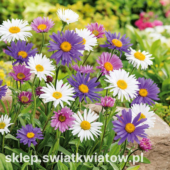 Aster alpejski to doskonały wybór do obsadzania rabat, obwódek oraz ogrodów skalnych. Jego kompaktowy pokrój i różnorodność kolorów czynią go idealnym elementem dekoracyjnym w ogrodzie. Może być również wykorzystywany jako roślina okrywowa, tworząc gęste i kolorowe kobierce. Doskonale komponuje się z innymi roślinami ozdobnymi, co pozwala na tworzenie różnorodnych aranżacji ogrodowych.