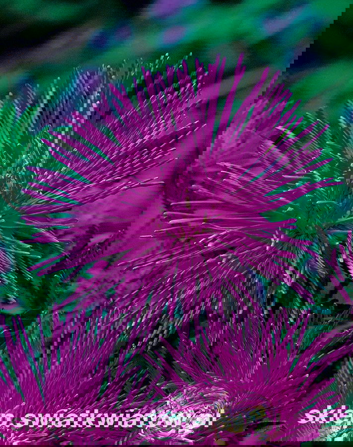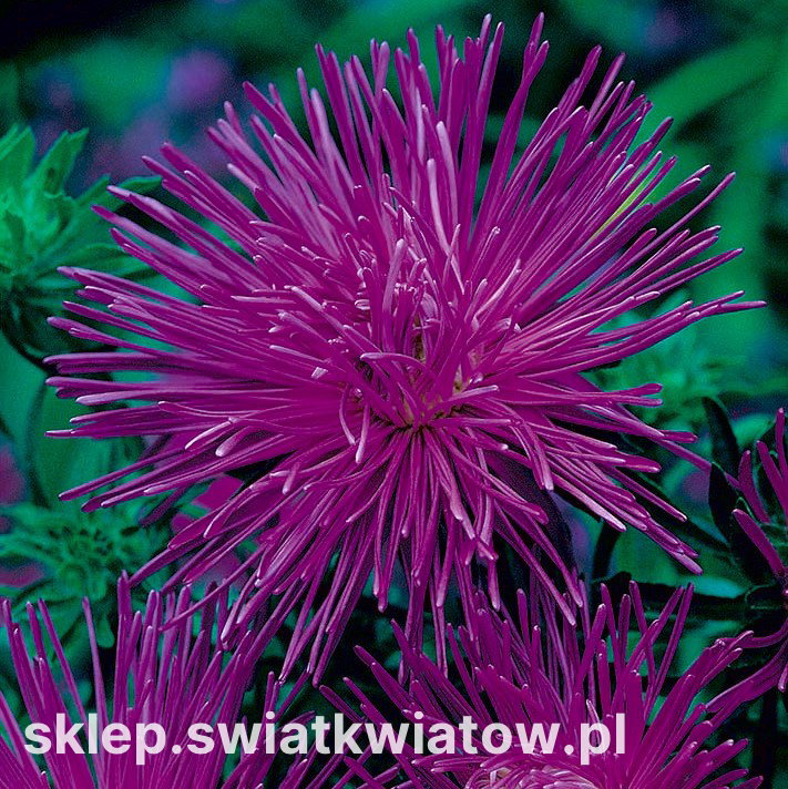 Aster chiński igiełkowy Impresja (Callistephus chinensis) odmiana o wyjątkowych kwiatostanach, które wyglądają jakoby składały się z wielu cieniutkich igiełek. Odmiana dorastająca do wysokości 40-50 cm o krzaczastym pokroju, która tworzy mocne, pionowe łodygi zwieńczone bardzo okazałymi kwiatami. Kwiaty rozwijają się stopniowo przez całe lato, aż do pierwszych jesiennych mrozów. Kwiatostany o niecodziennym wyglądzie i intensywnej fioletowoniebieskiej barwie będą robić spektakularne wrażenie. Można je przeznaczyć na kwiat cięty, ponieważ doskonale zachowują świeżość w wazonie. Rośliny te będą się pięknie prezentować na słonecznych rabatach i kwietnikach w otoczeniu innych letnich kwiatów.