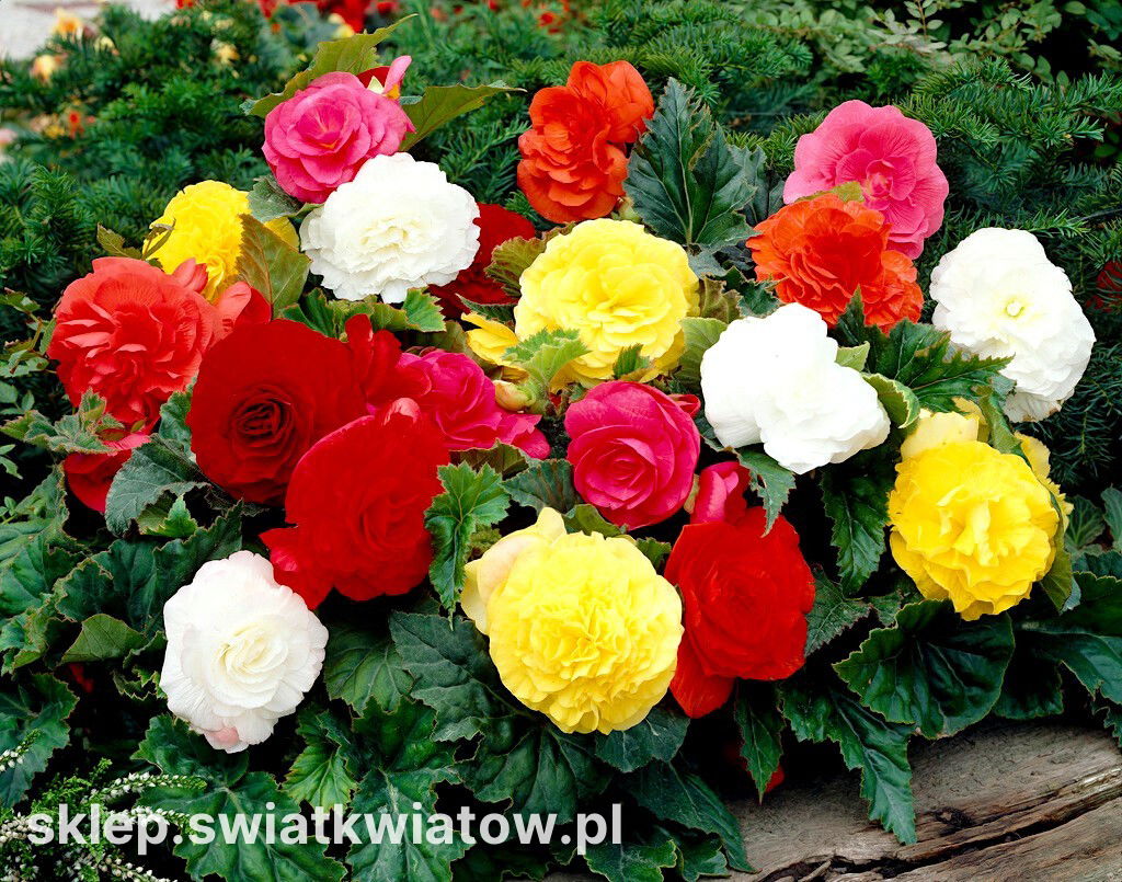 Begonia bulwiasta wielkokwiatowa jest jedną z najpiękniejszych roślin kwitnących. Seria Non Stop charakteryzuje się nieprzerwanym kwitnieniem od maja do późnej jesieni. Kwiaty o średnicy 10-15 cm, mają mięsiste, delikatne płatki o wspaniałych, czystych kolorach. Rośliny te idealnie sprawdzają się do obsadzania miejsc słabiej nasłonecznionych. Systematycznie nawożone begonie, zapewniają spektakularny efekt. Burza okazałych kwiatów przypominających róże otoczona jest grubymi liśćmi o sercowatym kształcie z wydłużoną jedną stroną. Ich brzeg jest mocno piłkowany A blaszka błyszcząca, ciemnozielona. Osiągające 20-30 cm krzaczki fantastycznie prezentują się na czele rabat, w donicach, misach, skrzynkach i wiszących koszach. Można z nich tworzyć kolorowe kompozycje jednogatunkowe i łączyć z innymi gatunkami w ciekawe aranżacje.