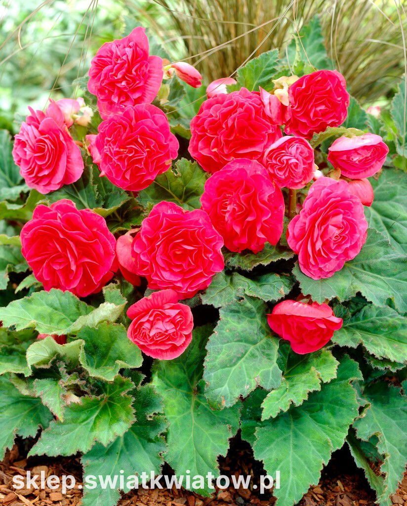 Begonia bulwiasta wielkokwiatowa jest jedną z najpiękniejszych roślin kwitnących. Seria Non Stop charakteryzuje się nieprzerwanym kwitnieniem od maja do późnej jesieni. Kwiaty o średnicy 10-15 cm, mają mięsiste, delikatne płatki o wspaniałych, czystych kolorach. Rośliny te idealnie sprawdzają się do obsadzania miejsc słabiej nasłonecznionych. Systematycznie nawożone begonie, zapewniają spektakularny efekt. Burza okazałych kwiatów przypominających róże otoczona jest grubymi liśćmi o sercowatym kształcie z wydłużoną jedną stroną. Ich brzeg jest mocno piłkowany A blaszka błyszcząca, ciemnozielona. Osiągające 20-30 cm krzaczki fantastycznie prezentują się na czele rabat, w donicach, misach, skrzynkach i wiszących koszach. Można z nich tworzyć kolorowe kompozycje jednogatunkowe i łączyć z innymi gatunkami w ciekawe aranżacje.