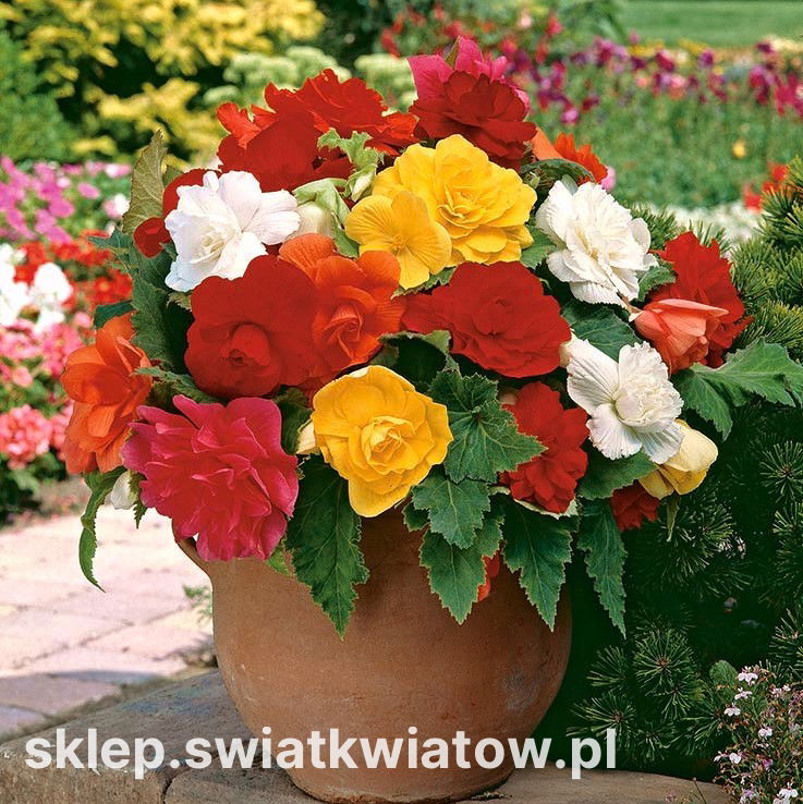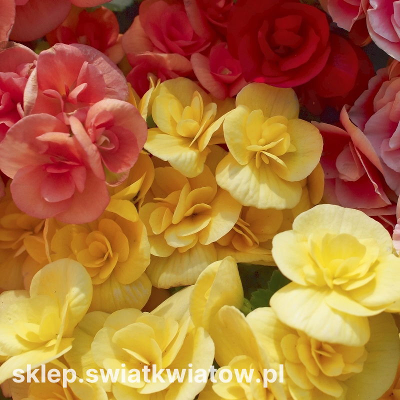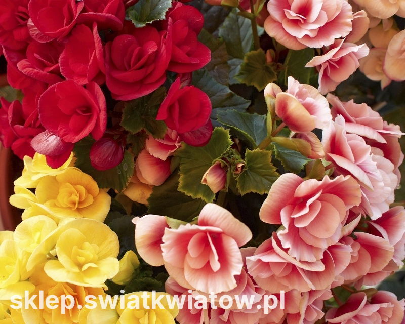 W opakowaniu mogą znajdować się begonie w następujących kolorach: biały, czerwony, pomarańczowy, żółty i różowy.