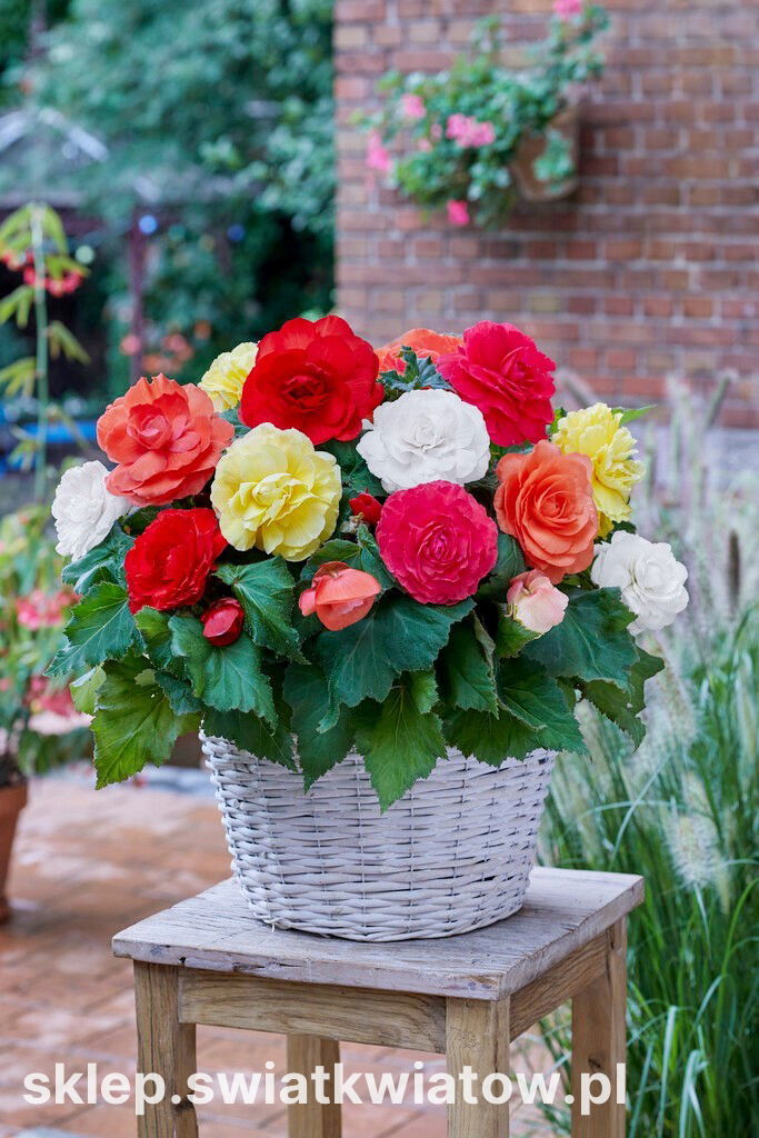 Begonia bulwiasta wielkokwiatowa (Begonia x tuberhybrida grandiflora) Superba jest odmianą oferującą ogromne, podwójne kwiaty o mocnych, jednorodnych kolorach. Niewysokie rośliny o ukośnych liściach z ząbkowanymi brzegami kwitną przez całe lato aż do jesiennego ochłodzenia. Ta rewelacyjna grupa begonii zachwyca ogrodników ilością i wyglądem swoich kwiatów, naśladujących rozwinięte róże. Nasycona, jednolita barwa płatków ułożonych w zgrabne okręgi jest widoczna z daleka na tle zielonego ulistnienia. Najwięcej kwiatów pojawia się na górnej części pędów, w kątach liści. Grube i kruche łodygi tworzą zwarty, krzaczkowaty pokrój rośliny. Begonie wielkokwiatowe to niezastąpione rośliny do sadzenia na frontach rabat, obwódkach czy eleganckich klombach położonych na mniej nasłonecznionych terenach. Ten szlachetny kwiat fenomenalnie nadaje się obsadzania donic, pojemników, wiszących koszy i skrzynek. Begonię bulwiastą można też traktować jako kwitnącą roślinę doniczkową.