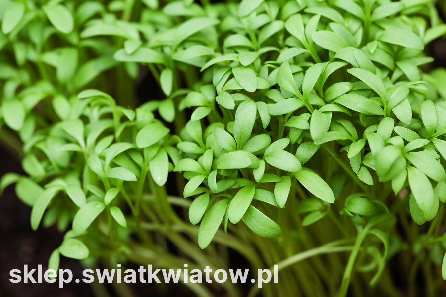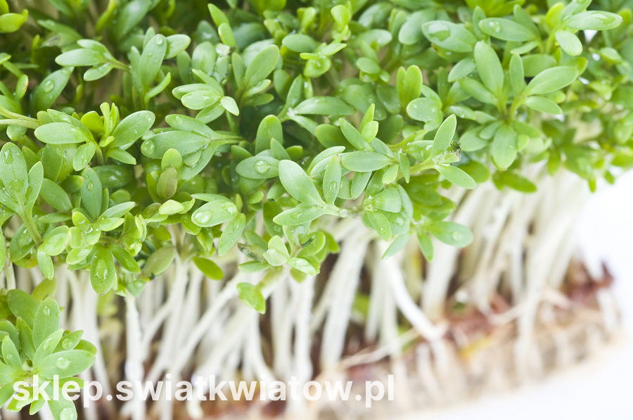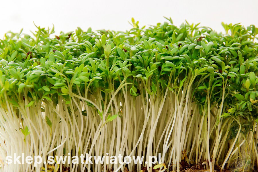 BIO Nasiona na kiełki – Rzeżucha – Certyfikowane nasiona ekologiczne (Lepidium sativum) zaliczają się do najłatwiejszych w uprawie kiełków. Cieniutkie, pieprzne w smaku kiełki rzeżuchy dostarczają nam cennych witamin, błonnika, a także soli mineralnych. Poprawiają trawienie, pobudzają apetyt, działają korzystnie na stan skóry, włosów i paznokci. Doskonale komponują się z potrawami jajecznymi i twarożkiem, pasują także do wędlin. Powinny gościć na naszych stołach nie tylko w okresie wielkanocnym, ale przez cały rok.