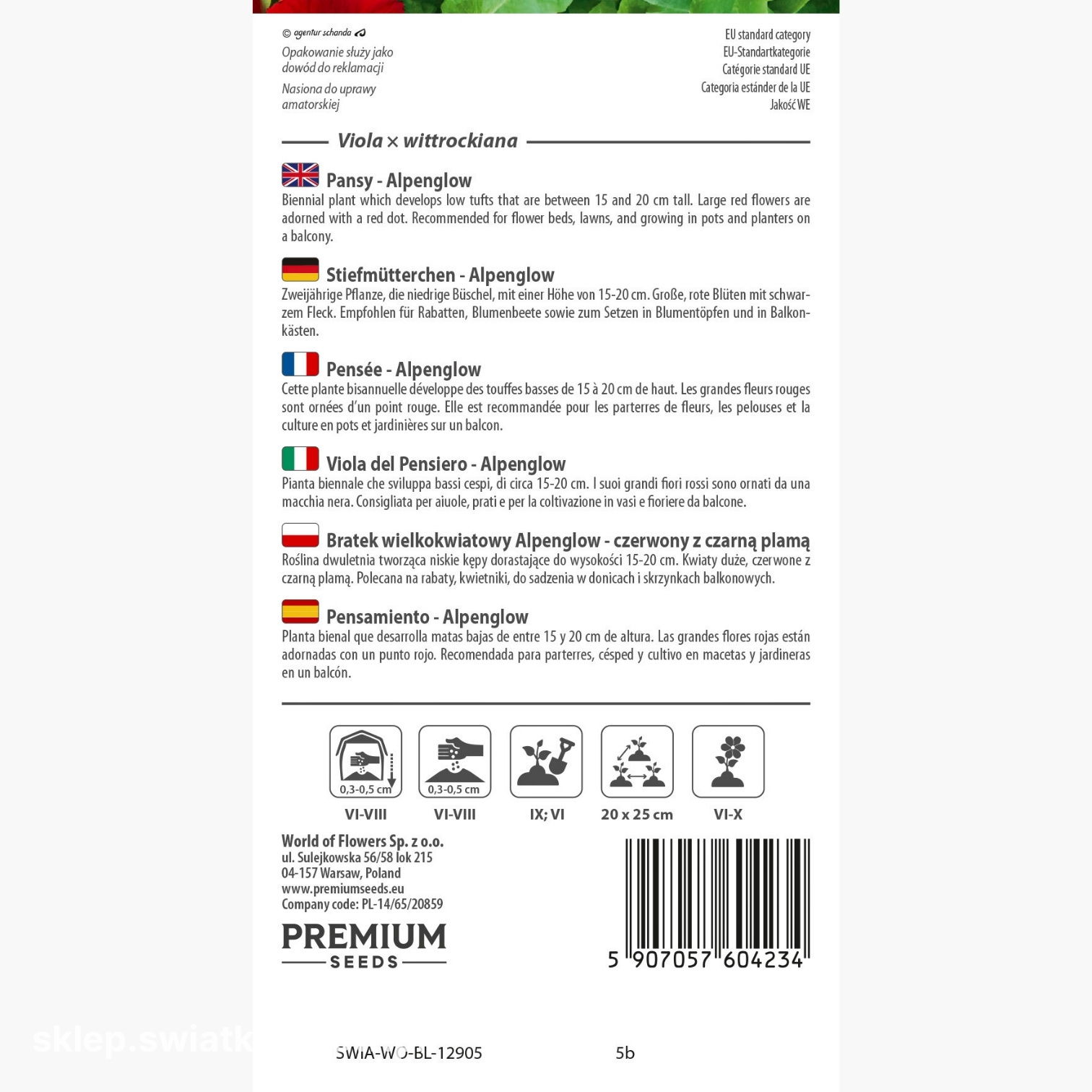Wybierając nasiona bratka wielkokwiatowego Alpenglow w sklepie Świat Kwiatów, masz pewność, że otrzymasz produkt najwyższej jakości. Nasiona pochodzą z kontrolowanych upraw, są starannie selekcjonowane i pakowane w sposób gwarantujący zachowanie świeżości oraz wysokiej zdolności kiełkowania. Sklep dba o szybką, bezpieczną wysyłkę i fachowe doradztwo, dzięki czemu możesz cieszyć się pewnym zakupem oraz sukcesem w uprawie. Świat Kwiatów to miejsce stworzone przez pasjonatów - tu każdy miłośnik ogrodnictwa znajdzie inspirację i wsparcie w realizacji swoich zielonych marzeń.