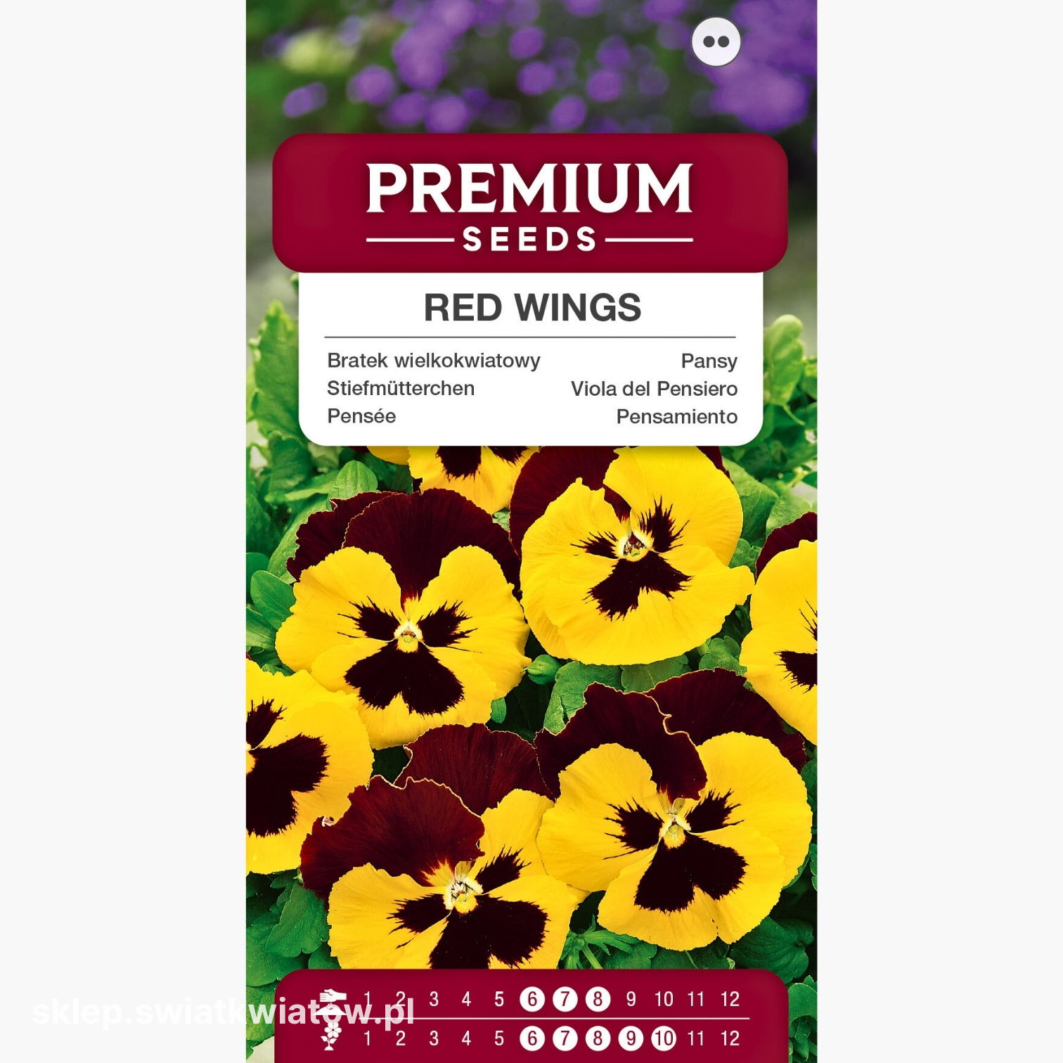 Bratek Red Wings kwitnie intensywnie od czerwca do października. Długie i obfite kwitnienie sprawia, że jest jedną z najbardziej wdzięcznych roślin do ogrodowych aranżacji sezonowych.