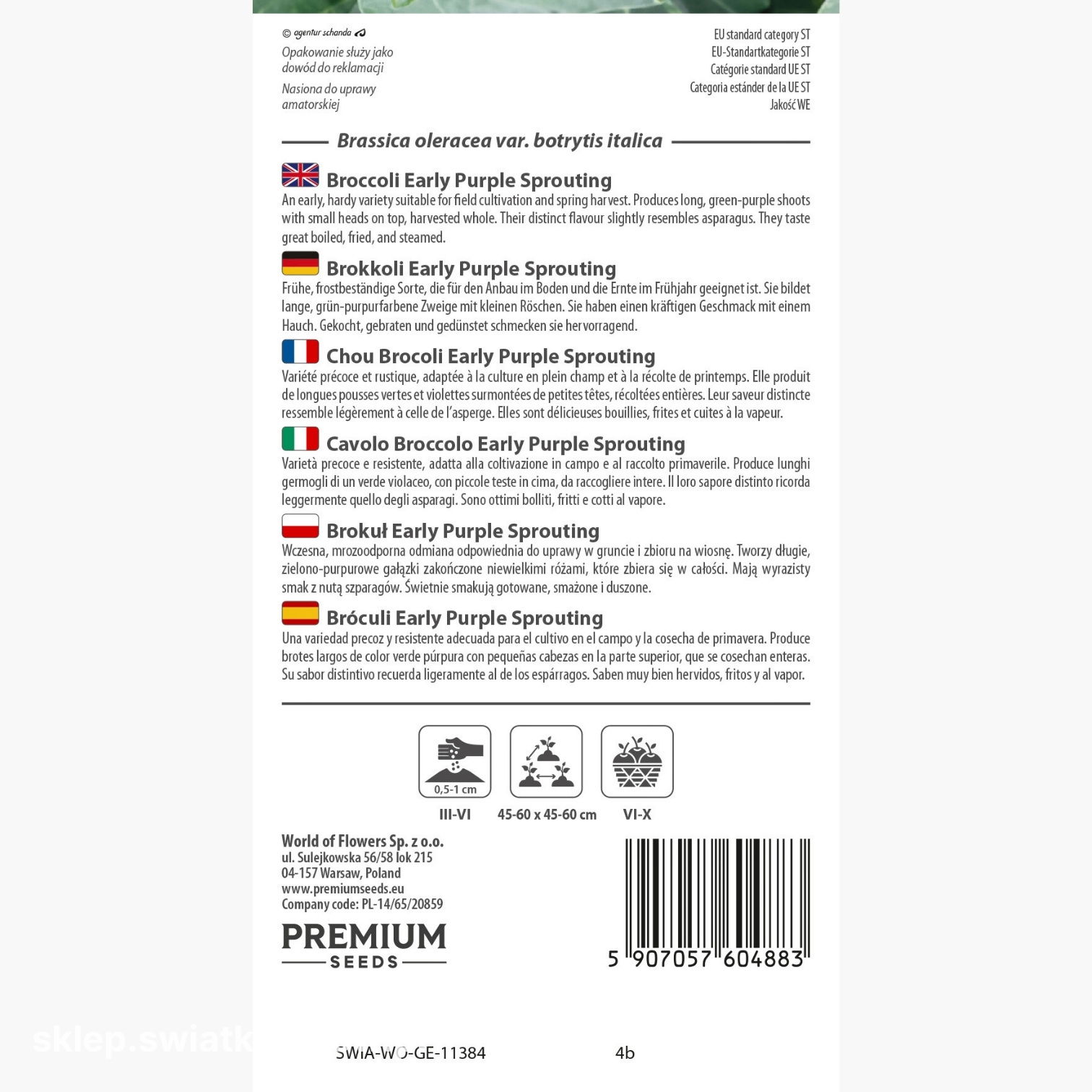 Nasiona brokuła Early Purple Sprouting wysiewa się na głębokość 0,5-1 cm. Taka grubość warstwy ziemi zapewnia nasionom stabilne warunki kiełkowania i równomierne wschody. Drobne nasiona warto przykryć cienką warstwą wilgotnego podłoża, które sprzyja silnemu ukorzenieniu młodych roślin.