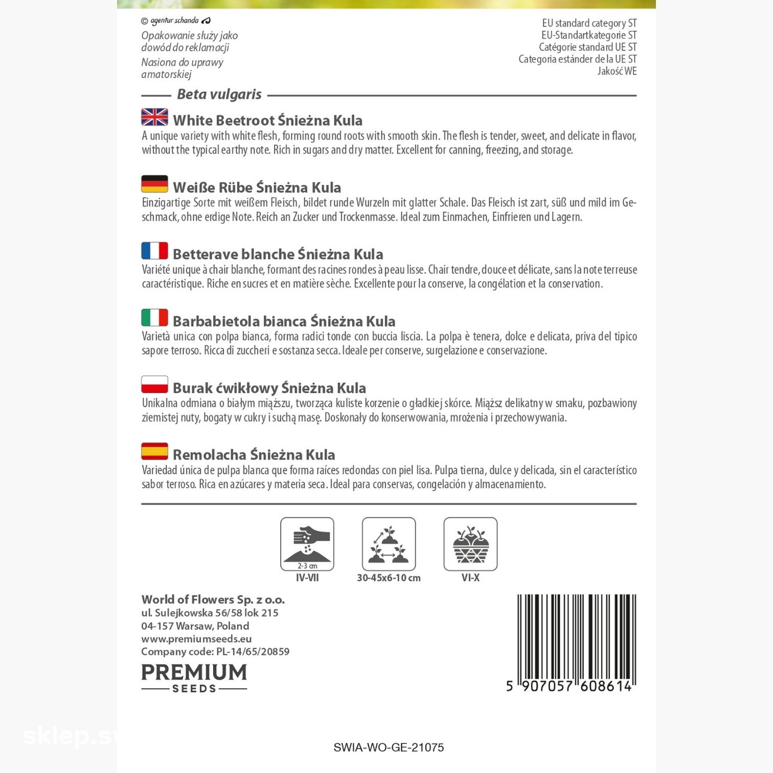 Burak ćwikłowy Śnieżna Kula (Beta vulgaris) jest odmianą buraka o kulistych korzeniach, mających gładką białą skórkę i śnieżnobiały, soczysty miąższ pozbawiony twardych włókien w pierścieniach. Jest doskonałym wyborem dla każdego, kto uwielbia smak buraków, ale nie lubi brunatnych plam na ubraniach. Korzenie buraka Śnieżna Kula są całkowicie pozbawione charakterystycznego barwnika – betaniny, który brudzi ręce i tkaniny oraz może powodować alergie. Walory smakowe i wartość odżywcza białego buraka są dokładnie takie same jak odmian barwnych. Jego korzenie są bogactwem witamin, kwasu foliowego i soli mineralnych oraz białka, cukrów i błonnika. Jest to odmiana przeznaczona do bezpośredniego spożycia, mrożenia i przetwórstwa. Białe buraki mogą być wykorzystywane do przyrządzania sałatek, które mają zachowywać naturalne zabarwienie składników, zup, zapiekanek, soków oraz dań dla małych dzieci i niemowląt.