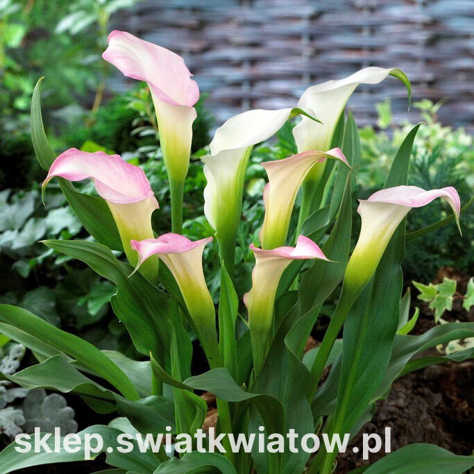 Calla Crystal Blush jest rośliną zasługującą na swoje miejsce w ogrodzie lub w donicy. Wznoszące się nad kępą liści kwiaty, mają szykowny biały kolor, a gdy dojrzewają, zaczynają się pięknie rumienić. Kwiatostan calli składa się z jasnożółtej, długiej kolby, która otoczona jest grubą pochwą. Liście w strzałkowatym kształcie nie posiadają plamek lub jest ich niewiele. Calla jest spektakularną rośliną gwarantującą niezwykły pokaz. Z jednej bulwy może wyrosnąć kilka kwiatów. Calla od dawna jest znanym i cenionym kwiatem ciętym, a teraz może być rośliną, która ozdobi dom i przydomowe rabaty. Ta ozdobna roślina o eleganckiej prezencji jest łatwa w uprawie - już przy niewielkim nakładzie pracy wprowadza jasne nuty koloru do kompozycji. Liczba wydawanych kwiatów poprawia się z roku na rok, kiedy roślina dobrze się zaaklimatyzuje do panujących warunków. Docelowo rośliny osiągają ok. 60 cm wysokości.
