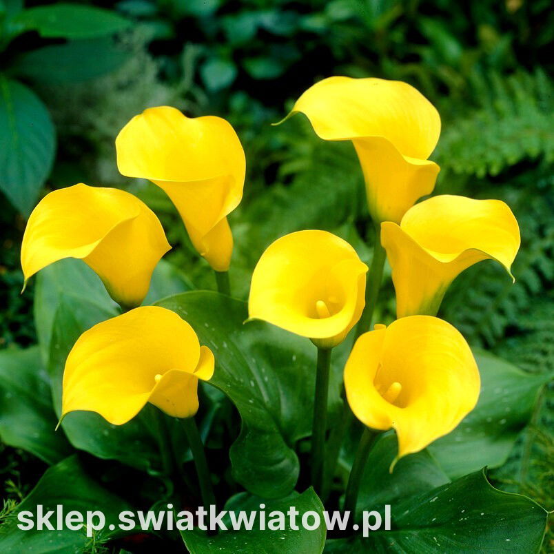 Calla Florex Gold jest bardzo atrakcyjną rośliną o intensywnie żółtych kwiatach. Strzeliste rośliny o nakrapianych liściach, genialnie prezentują się w doniczkach, skrzyniach i misach oraz na niewysokich rabatach. Calle znakomicie wyglądają w otoczeniu strumyków i oczek wodnych. Mocny kolor kwiatów idealnie nadaje się do ocieplenia wnętrza, niezależnie od jego stylu. Gatunek jest obecnie bardzo chętnie wykorzystywany na kwiat cięty. Śliczne, błyszczące kwiatostany mają zadziwiającą trwałość – wytrzymują bez utraty dekoracyjności nawet 15 dni. Uniwersalna wysokość 30-40 cm, daję możliwość stworzenia ciekawych kompozycji z udziałem calli Florex Gold.
