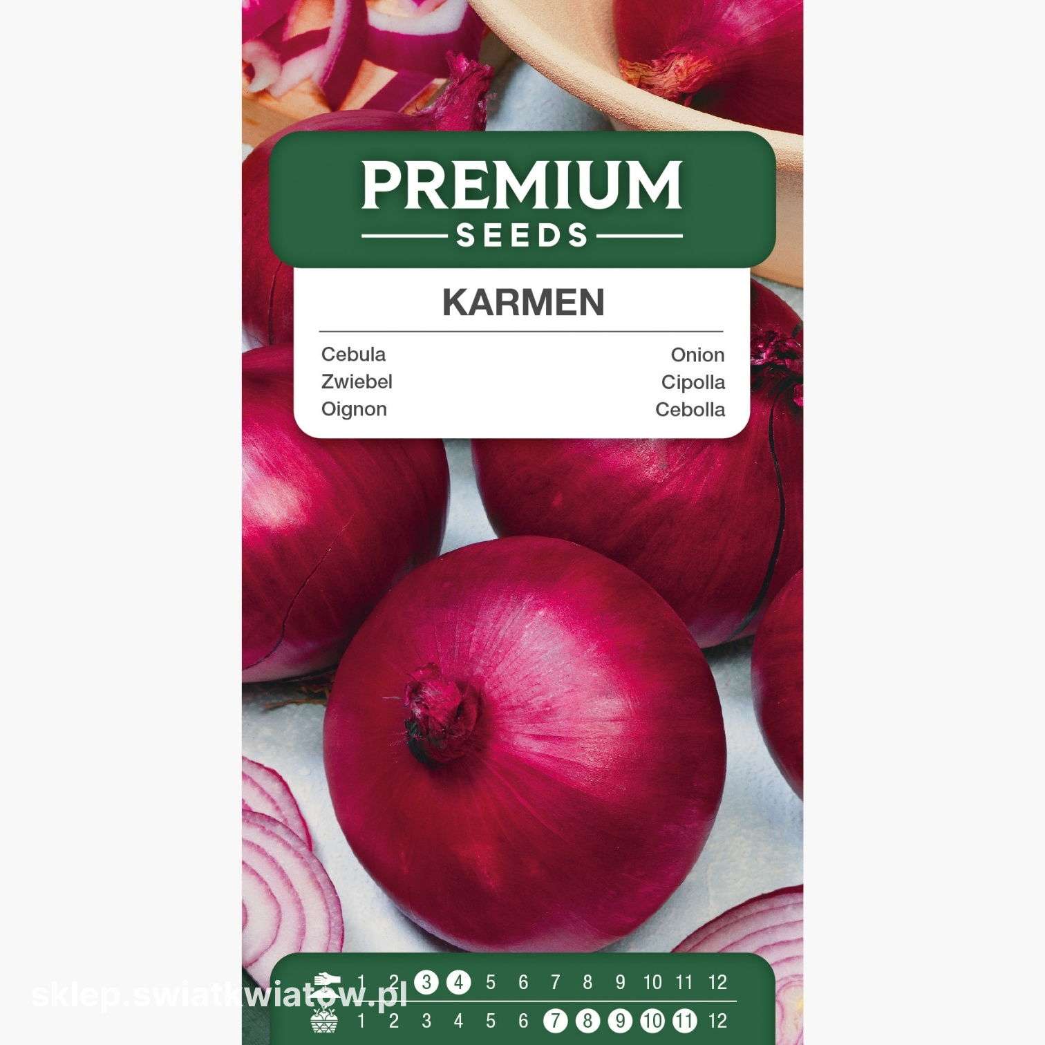 Cebula Karmen to ceniona odmiana o intensywnie purpurowoczerwonych łuskach i soczystym, wyrazistym miąższu, która z powodzeniem wzbogaci każdy ogród warzywny. Jej delikatnie słodkawy smak sprawia, że świetnie sprawdza się zarówno w świeżych daniach, jak i po obróbce termicznej. Odmiana ta doskonale nadaje się do długiego przechowywania – nawet do wczesnej wiosny – zachowując swoje walory smakowe i jędrność. Cebula Karmen dojrzewa średnio wcześnie, co pozwala cieszyć się zbiorami już w środku lata. Nasiona oferowane przez nasz sklep zostały starannie wyselekcjonowane i przeszły dokładne testy jakościowe, co przekłada się na ich wysoką zdolność kiełkowania i niezawodność w uprawie. Zadowolenie klientów oraz sprawna, bezpieczna dostawa sprawiają, że zakupy w sklepie Świat Kwiatów są wygodne i godne polecenia.