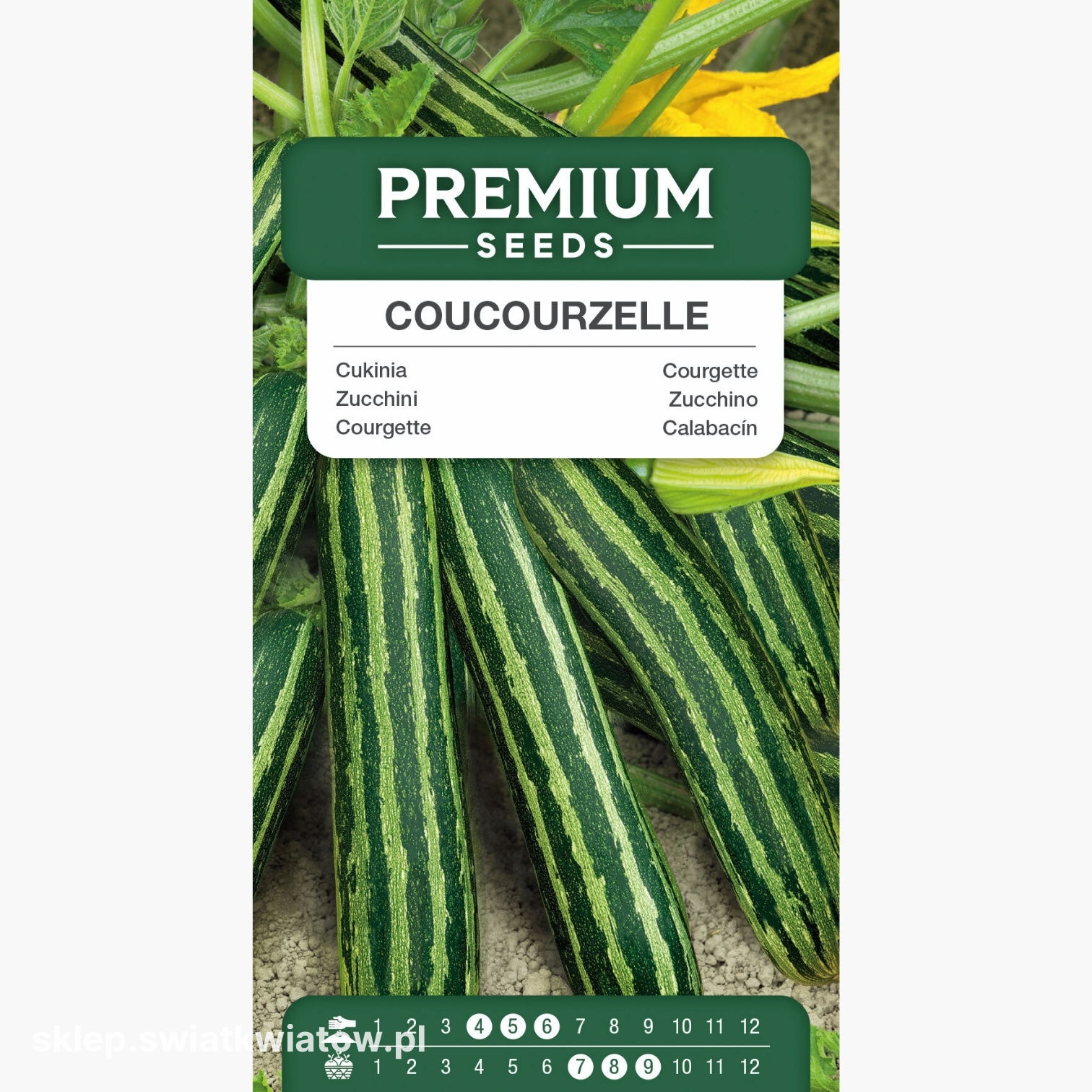 Cukinia Coucourzelle to efektowna, pasiasta odmiana cukinii ceniona za wysoką plenność, krzaczasty pokrój i dekoracyjne owoce. Tworzy długie, smukłe owoce o ciemnozielonej, błyszczącej skórce, pokrytej jasnymi smugami. Kremowy, jędrny miąższ jest niezwykle aromatyczny i chrupiący, a najlepsze walory smakowe osiąga, gdy owoce mają długość około 15–20 cm. Odmiana ta nadaje się do wszechstronnego wykorzystania w kuchni, doskonale smakuje duszona, faszerowana, smażona, zapiekana czy grillowana. Mniejsze owoce można także marynować.