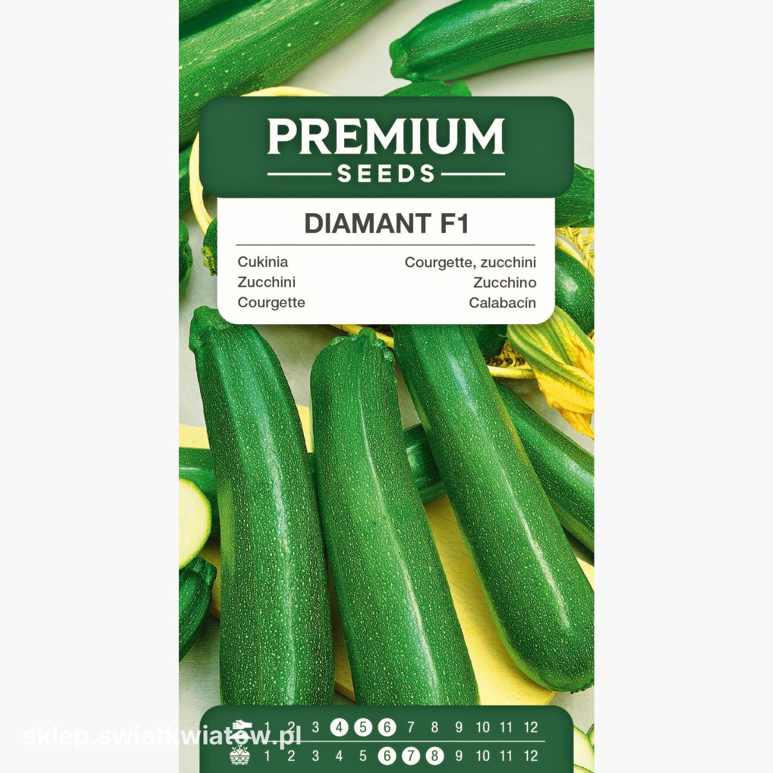 Owoce cukinii Diamant F1 można zbierać od czerwca do sierpnia. Regularne zbiory stymulują roślinę do produkcji nowych kwiatów i owoców, co zwiększa ogólną wydajność uprawy.