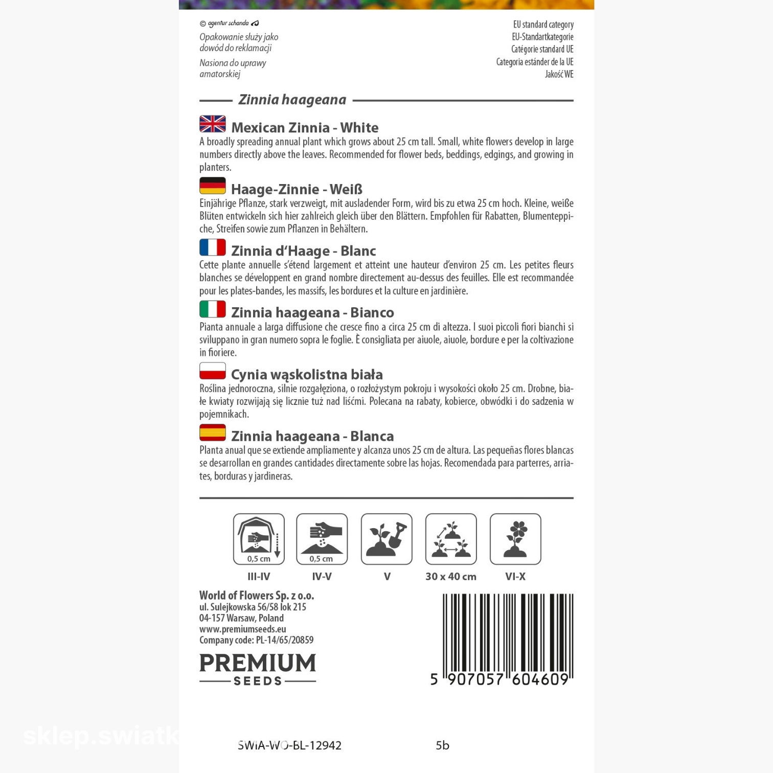 Opakowanie zawiera 0,2 g nasion. Na opakowaniu znajdziesz informacje o zasadach uprawy i terminie przydatności do wysiewu.