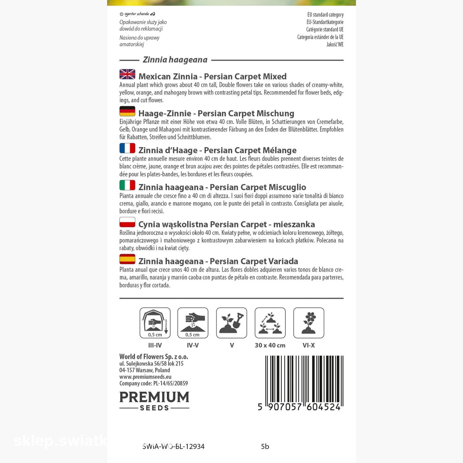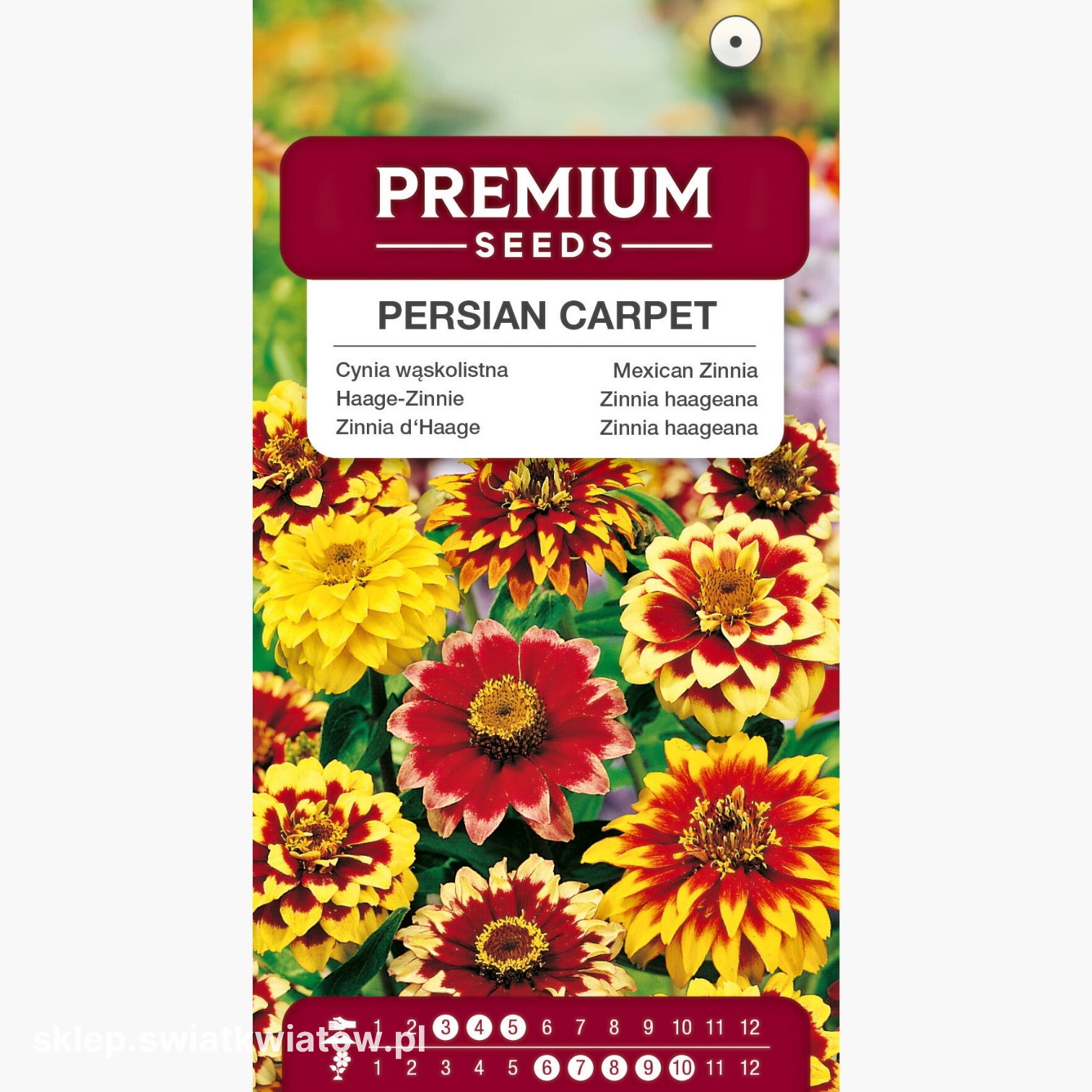Cynia wąskolistna Persian Carpet to prawdziwy klejnot wśród roślin jednorocznych. Jej bajecznie kolorowe kwiaty tworzą niezwykle efektowny dywan barw, który ożywia każdy ogród. Roślina dorasta do około 40 cm wysokości i zachwyca gęstym, rozgałęzionym pokrojem. Kwiaty - pełne i półpełne - ukazują bogatą gamę odcieni kremowych, żółtych, pomarańczowych i mahoniowych, często z dekoracyjnym, kontrastowym obrzeżeniem płatków. Ta niezwykła mieszanka przyciąga wzrok z daleka, a jej kwiaty chętnie odwiedzają motyle i pszczoły, wnosząc w przestrzeń ogrodową życie i naturalny ruch. Idealna na rabaty, obwódki oraz do bukietów - długo zachowuje świeżość po ścięciu, nadając wnętrzom ciepły, letni charakter.