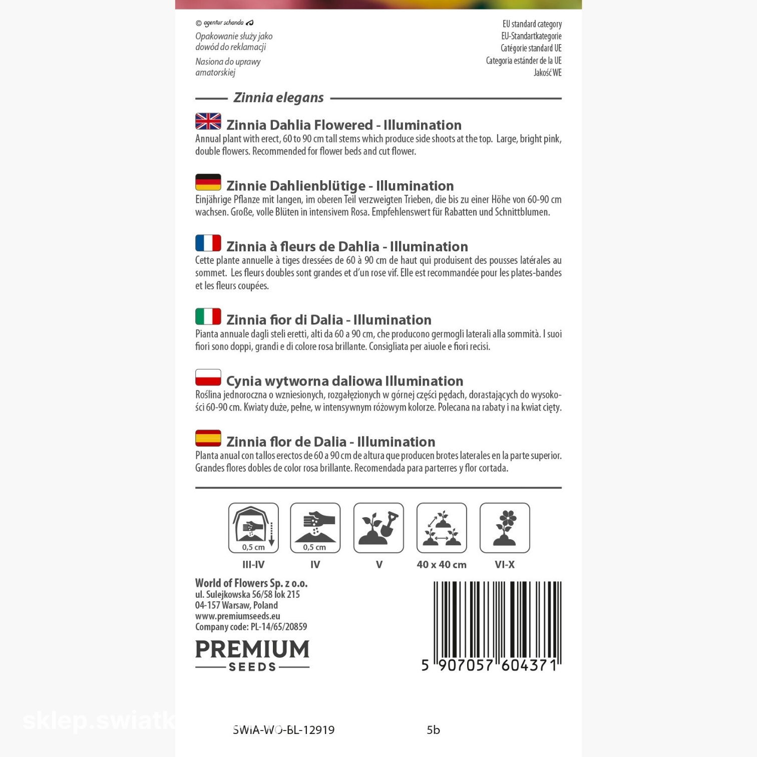 Nasiona cynii wytwornej daliowej Illumination wysiewa się na głębokość około 0,5 cm. Takie umieszczenie gwarantuje im odpowiednie warunki do szybkiego kiełkowania i równomiernego wzrostu młodych siewek.