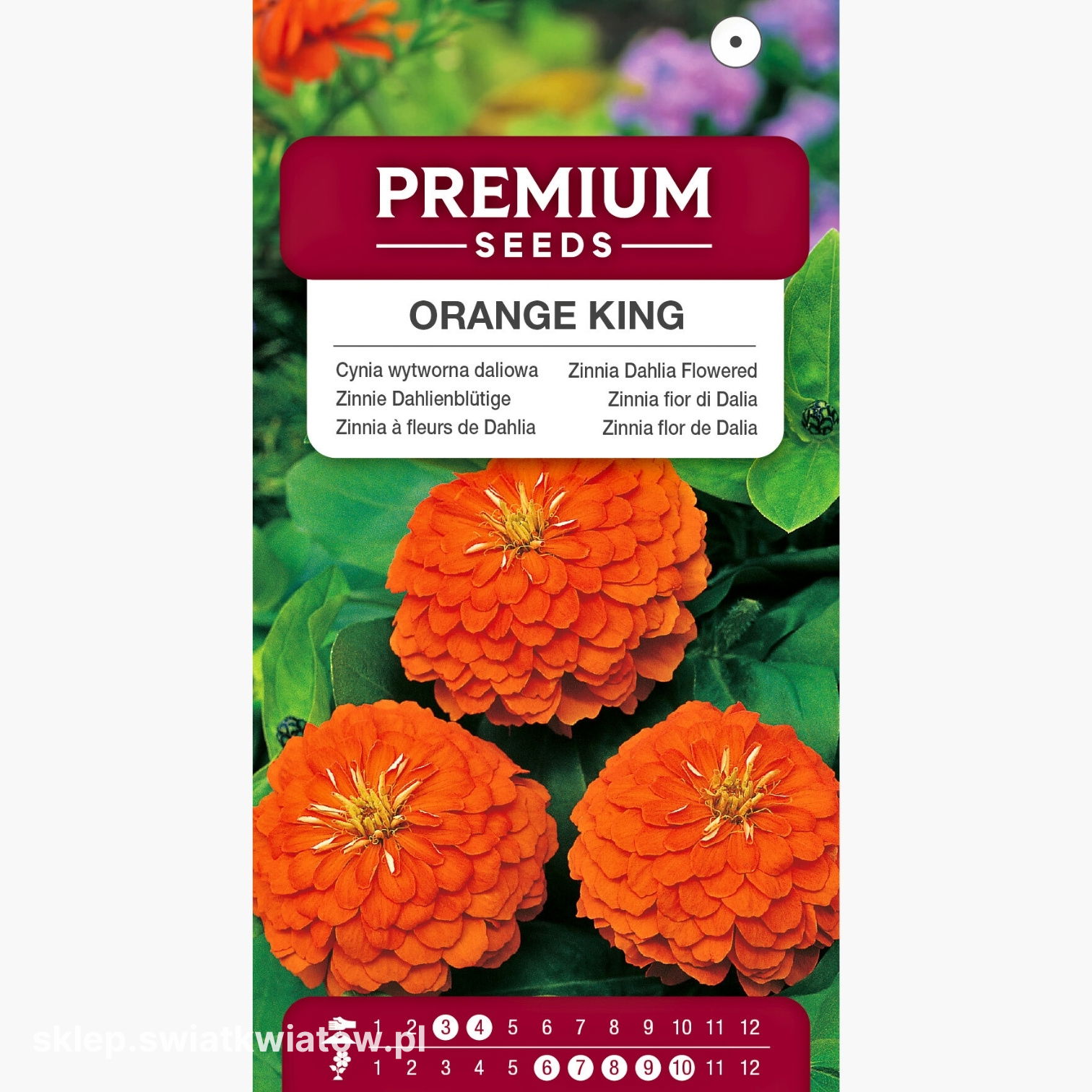 Cynia wytworna daliowa Orange King to odmiana, która wyróżnia się intensywną, pomarańczową barwą kwiatów i wyrazistym charakterem, wnosząc do ogrodu energię oraz silny akcent kolorystyczny. Jej mocne, wzniesione pędy, osiągające wysokość od 60 do 90 cm, zakończone są dużymi, pełnymi kwiatami. Każdy kwiat przypomina małe słońce - rozświetla rabaty, obwódki i donice, przyciągając wzrok z każdej strony. To odmiana, która zachwyca od pierwszego dnia kwitnienia aż do późnej jesieni, sprawiając, że ogród tętni barwą, nawet gdy inne rośliny zaczynają przekwitać. Orange King to cynia, której elegancki pokrój i długie łodygi czynią ją idealnym kwiatem ciętym. W wazonie utrzymuje świeżość przez wiele dni, zachowując intensywny kolor i kształt płatków. Z łatwością może stać się królową letnich bukietów, wprowadzając do wnętrz promienie słońca nawet w pochmurne dni.