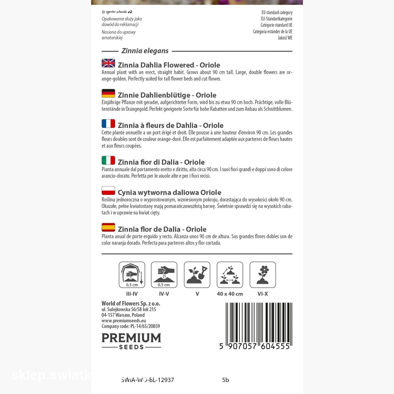 Dzięki swoim okazałym kwiatostanom, cynia wytworna daliowa Oriole doskonale sprawdza się jako roślina na kwiat cięty, idealna do bukietów i kompozycji florystycznych. Jej intensywne kolory ożywią każdy ogród i wnętrze, wprowadzając do nich odrobinę luksusu i elegancji.