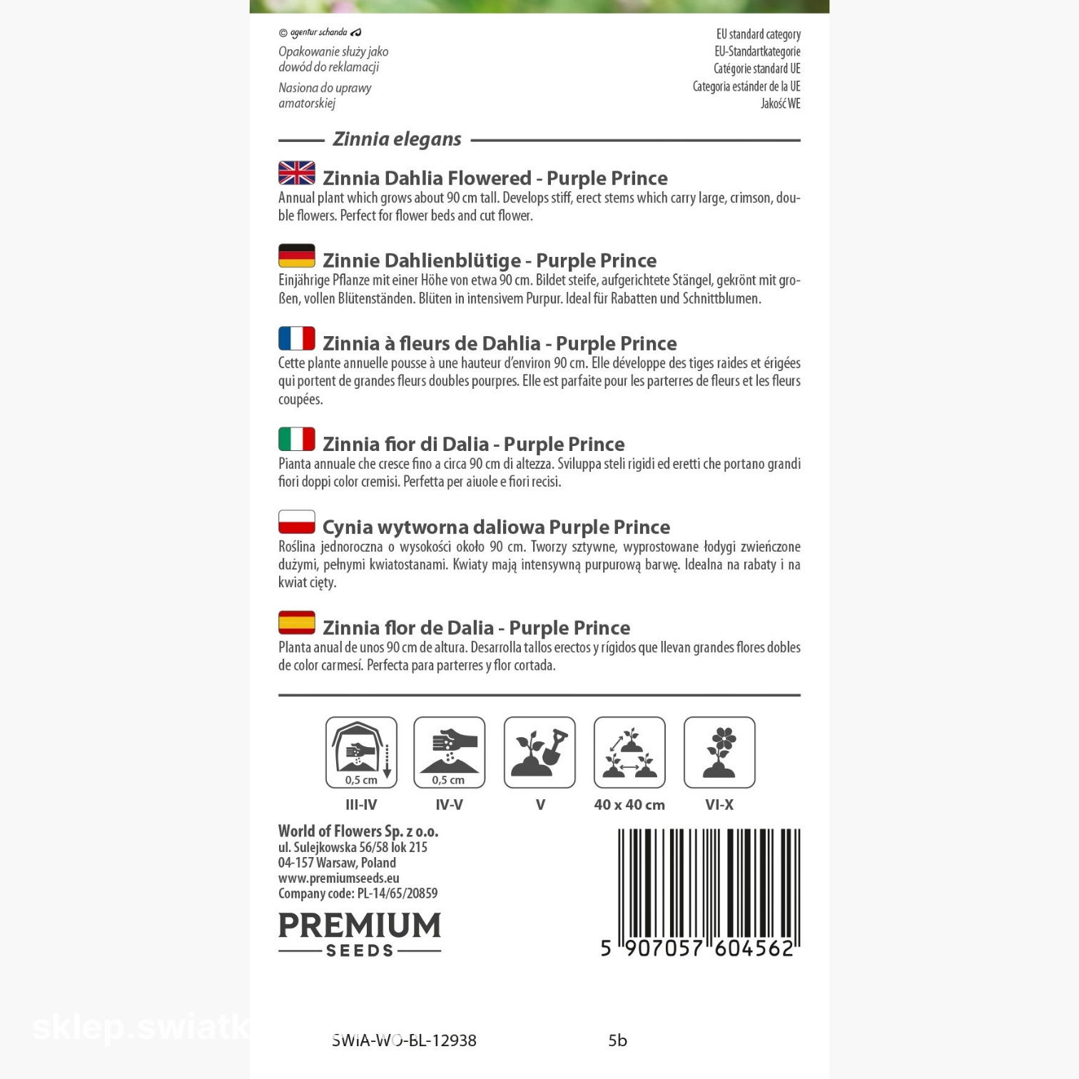 Cynia wytworna daliowa Purple Prince dorasta do wysokości około 90 cm. Taka wysokość sprawia, że jest doskonałym wyborem na tło rabat kwiatowych oraz jako kwiat cięty do wazonów.