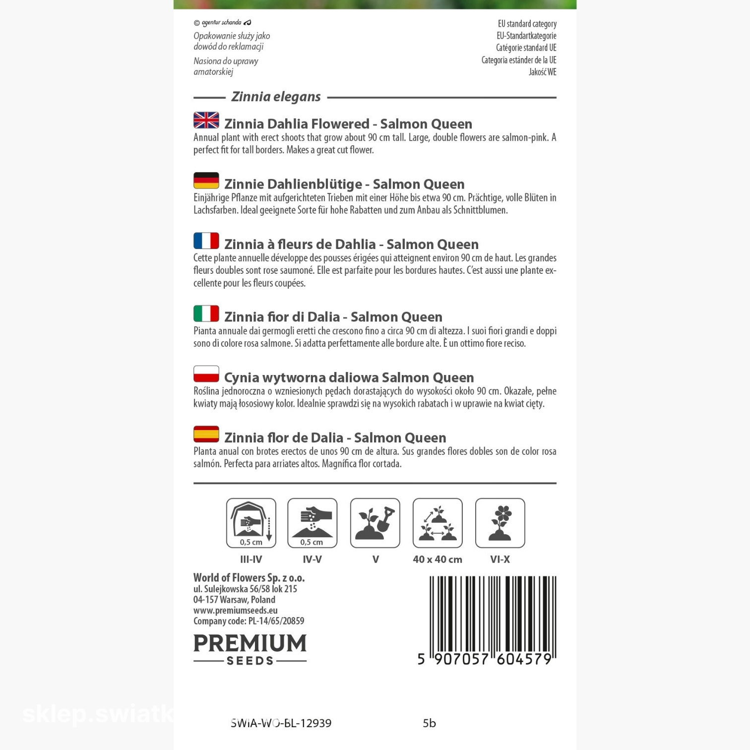 Cynia wytworna daliowa Salmon Queen dorasta do około 90 cm wysokości. Jej wzniesione pędy dodają elegancji każdej kompozycji ogrodowej, a pełne kwiaty przyciągają wzrok i stanowią prawdziwą ozdobę przestrzeni.