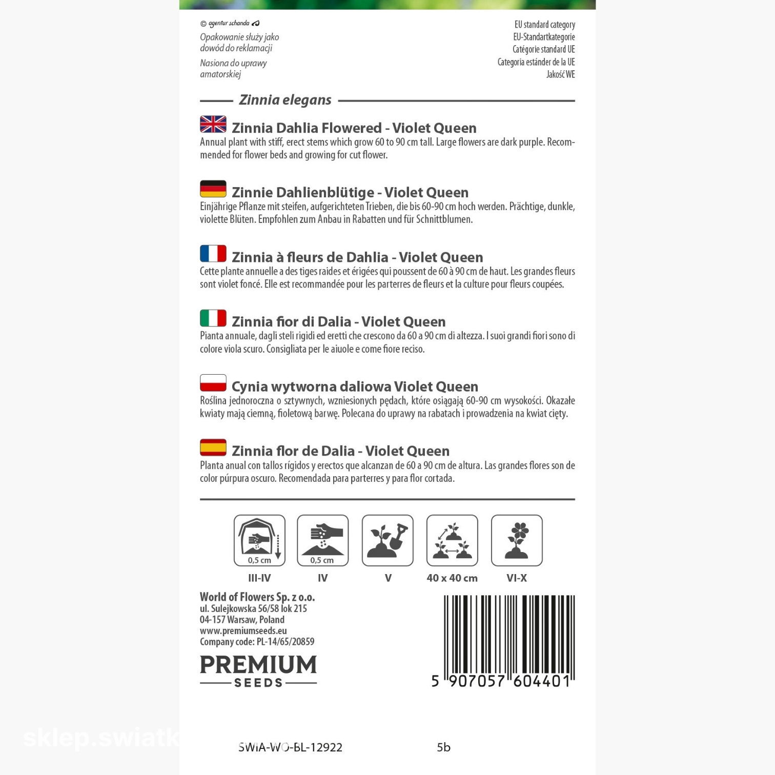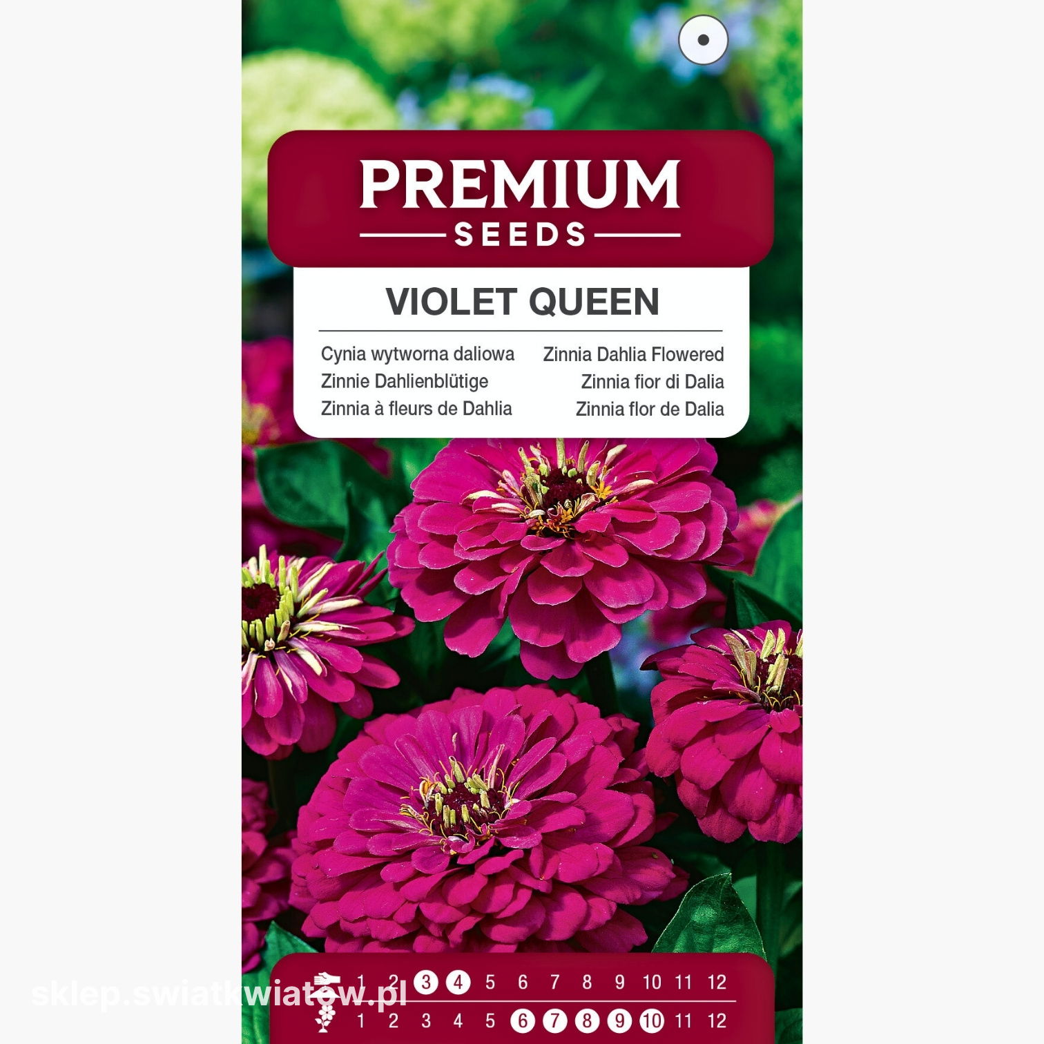 Nasiona cynii wytwornej daliowej Violet Queen wysiewa się na głębokość około 0,5 cm. Tak płytki siew zapewnia szybkie i równomierne wschody, pod warunkiem utrzymania wilgotnego, ale nie przemoczonego podłoża.