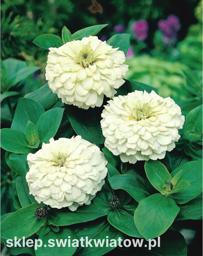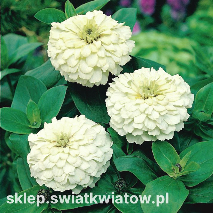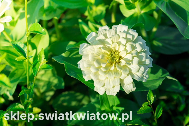 Opakowanie zawiera 0,5 g nasion Cynia wytworna karłowa Liliputek biała, datę przydatności nasion do siewu i zasady uprawy.