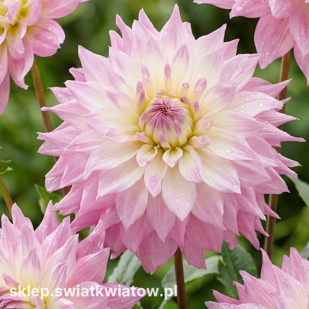 To odmiana o imponujących, bardzo dużych kwiatach - ich średnica może osiągać nawet 25 cm. Płatki są pełne i gęsto ułożone, w delikatnym, lawendowo-różowym kolorze z kremowym środkiem. Każdy kwiat wygląda niezwykle szlachetnie, a roślina prezentuje się bardzo elegancko zarówno na rabacie, jak i w dużej donicy. Wysokie, mocne łodygi dorastają do około 100-120 cm i dobrze radzą sobie z ciężarem kwiatów. Dzięki swojemu pokrojowi i kolorystyce odmiana ta wprowadza do ogrodu nutę klasycznej elegancji i znakomicie komponuje się z innymi roślinami kwitnącymi.