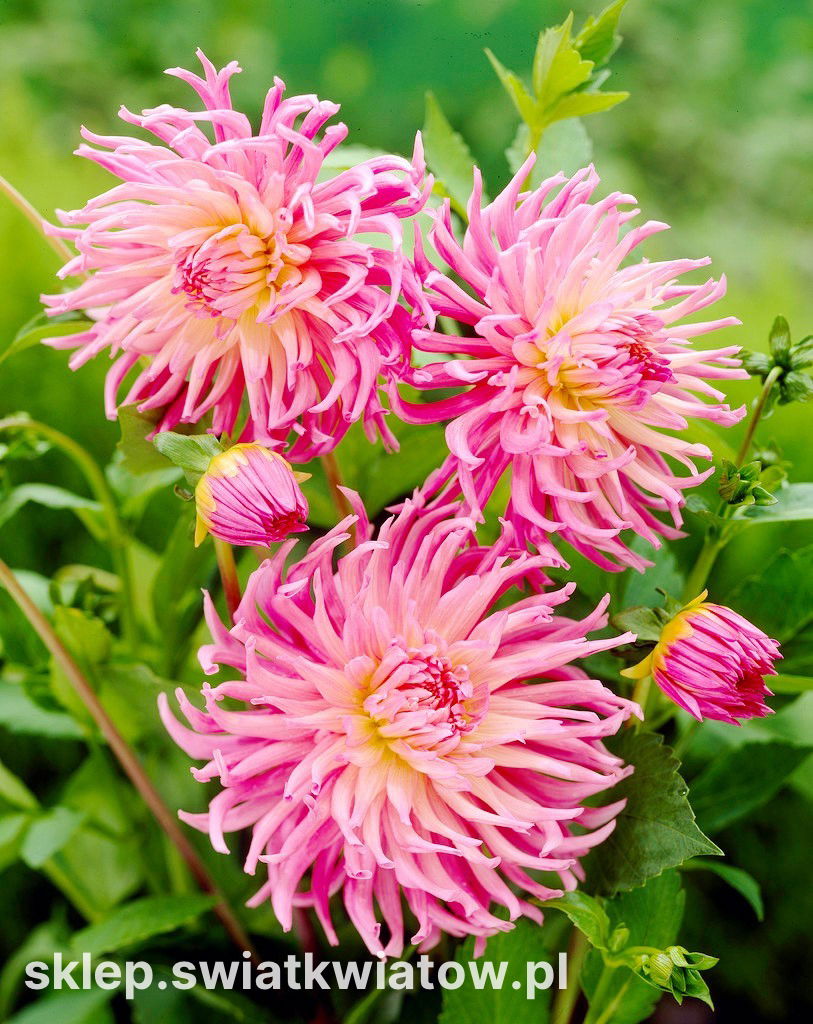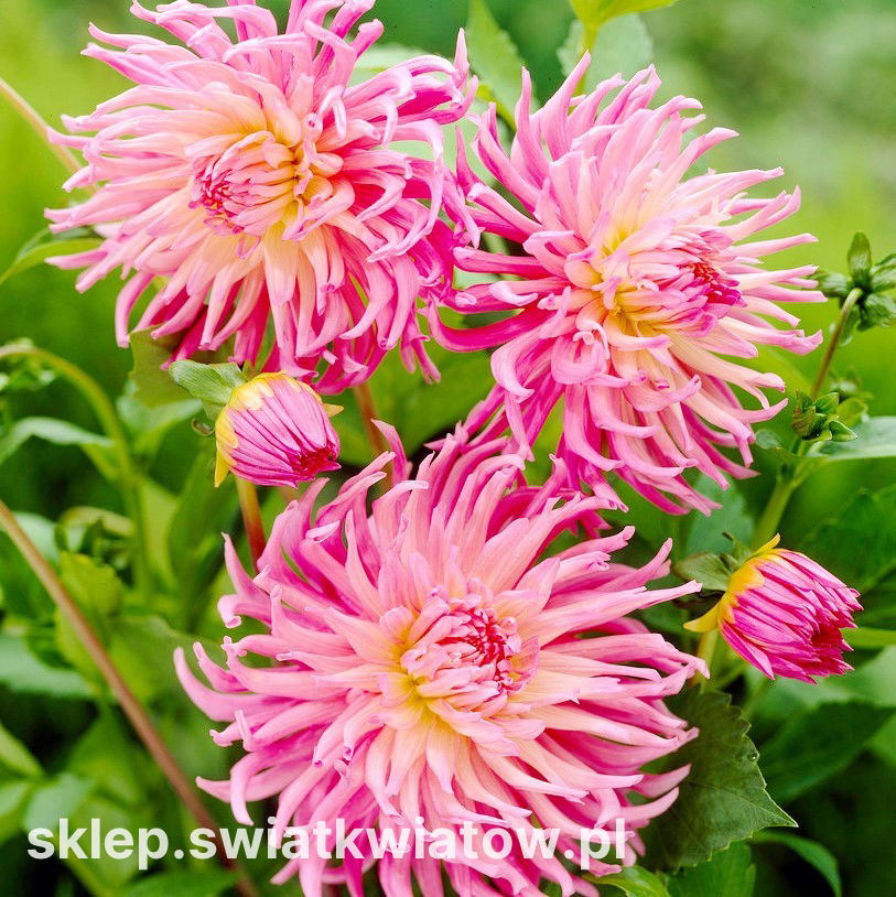 Dalia Star's Favourite o jasnoróżowych kwiatach z kremowym centrum jest oszałamiającym egzemplarzem dalii kaktusowych. Zwinięte w cienkie igiełki płatki są delikatnie zakrzywione do środka kwiatu, co nadaje im wytwornego wyglądu. Osiągające w przybliżeniu metrową wysokość, szykowne kępy dalii nie sprawiają kłopotów w uprawie. Przy zachowaniu dobrej pielęgnacji rośliny te, będą cudowną i mało wymagającą ozdobą każdej działki. Dalie o kolczastych płatkach są stworzone do układania w oryginalnych bukietach. Rewelacyjnie komponują się z innymi daliami o pastelowych kolorach kwiatów albo na zasadzie kontrastu, z odmianami o ciemnej barwie płatków. Bukiet dalii z własnego ogrodu to recepta na poprawienie sobie nastroju, kiedy lato powoli odchodzi.