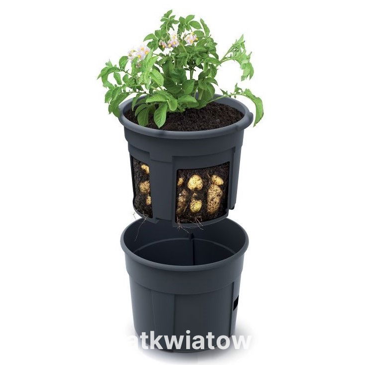 Doniczka do uprawy ziemniaków - Potato Grower pozwala na uzyskanie własnych warzyw. Jest to produkt, dzięki któremu wyhodujemy ziemniaki na niedużej przestrzeni np. na balkonie czy niedużej działce. Doniczka składa się z dwóch części – osłonki i wyjmowanego wkładu. Konstrukcja pozwala na obserwowanie wzrostu bulw i podbieranie ich po osiągnięciu oczekiwanych rozmiarów. Uprawa ziemniaków w doniczce nie wymaga wyrywania całej rośliny, gdy mamy ochotę na świeżutkie warzywo. Wystarczy wyjąć wkład i delikatnie zebrać bulwy znajdujące się najbliżej ścianki donicy. Doniczka Potato Grower to strzał w dziesiątkę dla osób chcących spróbować swoich sił w samodzielnej, ekologicznej uprawie ziemniaków.