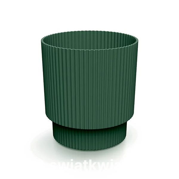 Doniczka ryflowana Milly - 13 cm - zielona piniowa sprawdza się jako oprawa dla mniejszych roślin ozdobnych, ziół oraz młodych sadzonek. Można ją ustawić na parapecie, na półce w salonie, w kuchni przy oknie lub w strefie wypoczynkowej na balkonie. Zieleń piniowa dobrze współgra z roślinami o jasnych i ciemniejszych liściach, tworząc spójną, naturalną całość. Model ten dobrze prezentuje się pojedynczo oraz w grupie kilku doniczek ustawionych obok siebie.