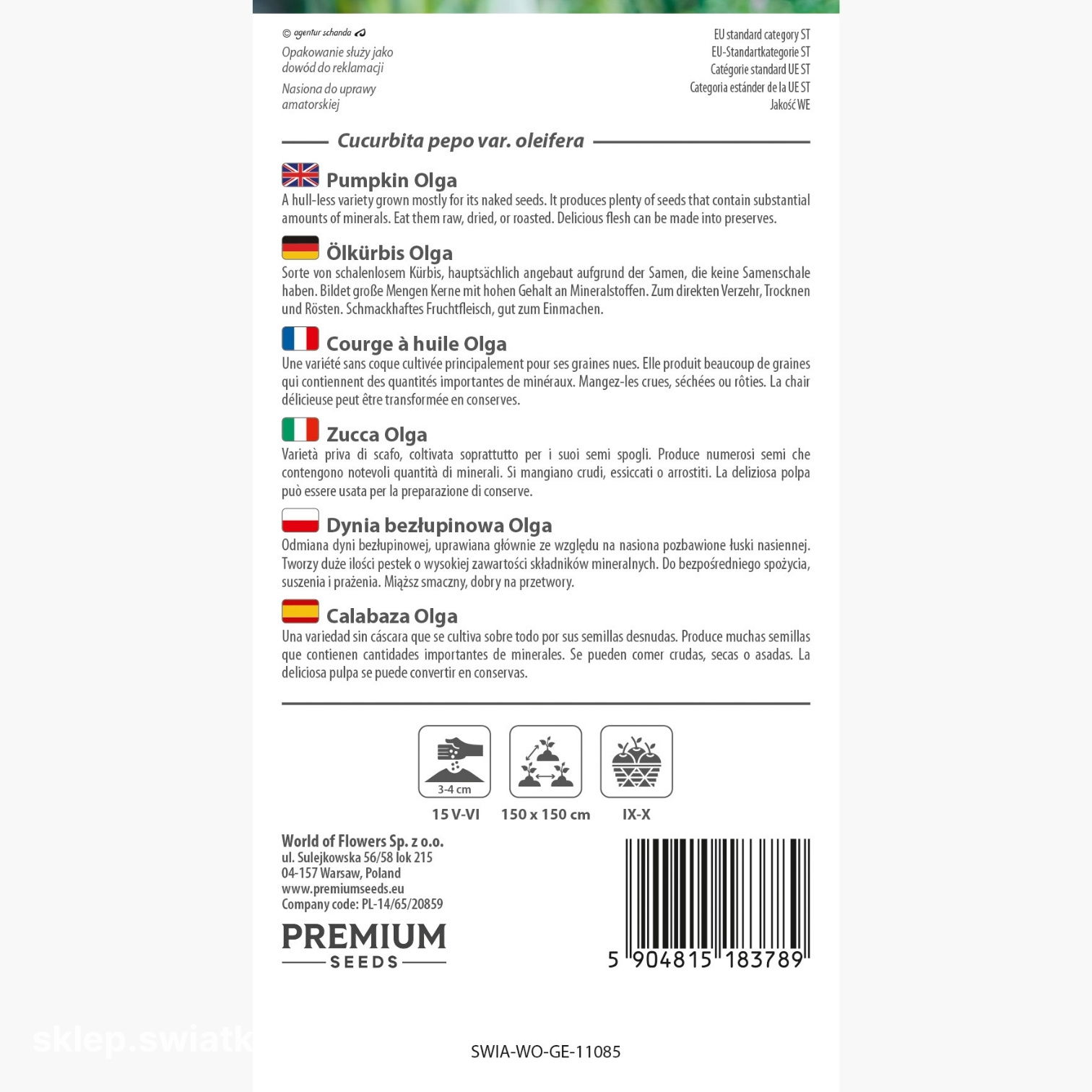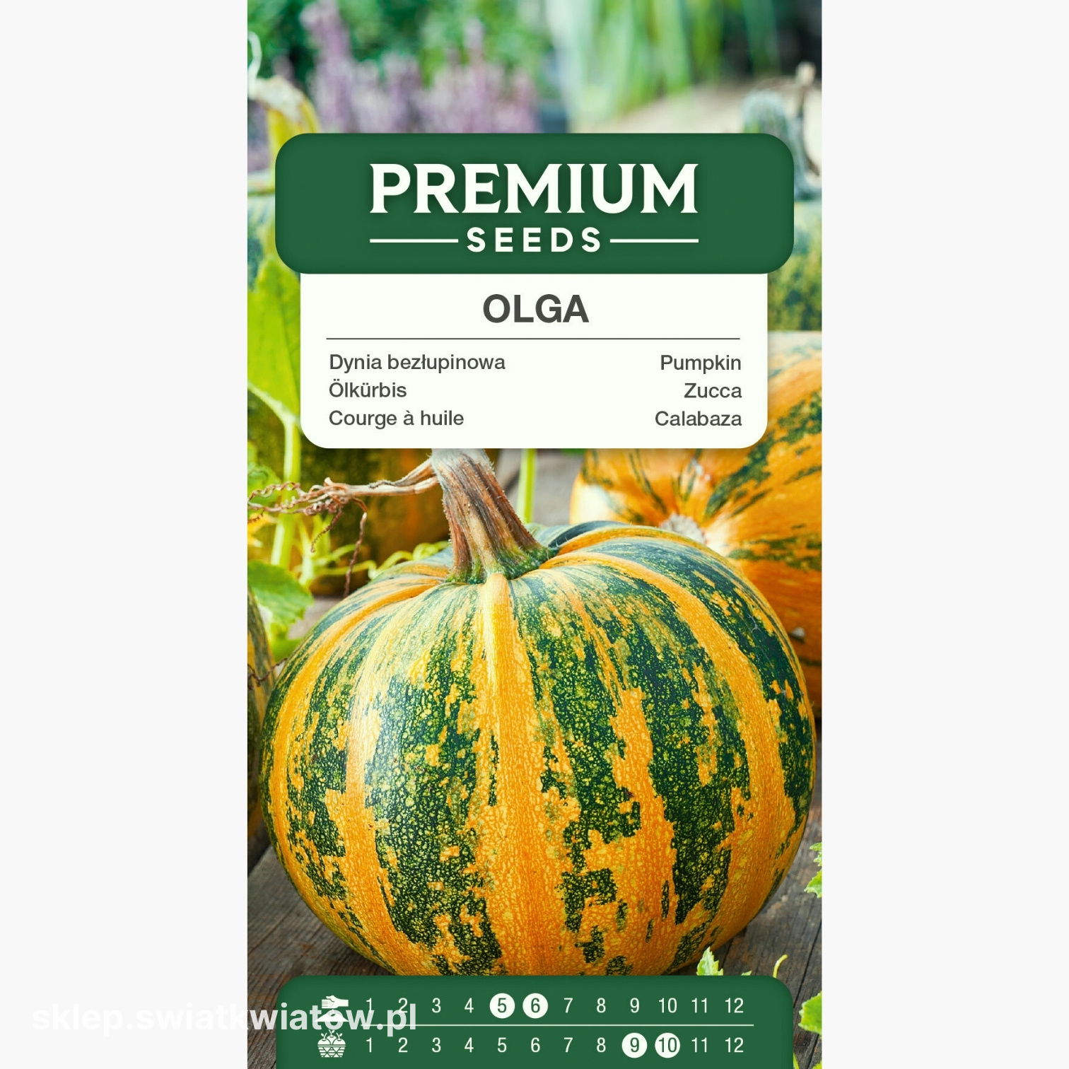 Dynia zwyczajna Olga – bezłupinowa to ceniona odmiana o wszechstronnym zastosowaniu i nietypowych cechach. Choć jej miąższ jest jadalny, to największą wartość stanowią nasiona pozbawione łuski nasiennej, gotowe do spożycia bez konieczności łuskania. Idealne do suszenia, prażenia lub jedzenia na surowo, są źródłem cennych składników mineralnych. Roślina wyróżnia się łatwą uprawą i wysokim plonem, dlatego świetnie sprawdzi się zarówno w ogrodach przydomowych, jak i na większych uprawach.
