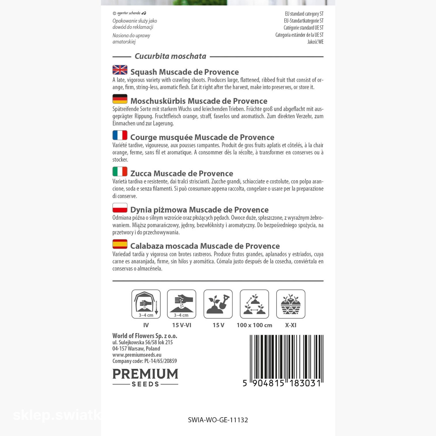 Dynia piżmowa Muscade de Provence to ceniona odmiana o wyjątkowych walorach smakowych i dekoracyjnych, idealna dla osób poszukujących wszechstronnych składników kuchennych. Jest to odmiana średniopóźna, charakteryzująca się obfitym plonem i dobrą trwałością przechowalniczą, zachowuje jędrność i pełnię smaku przez wiele tygodni po zbiorze. Jej miąższ ma intensywnie pomarańczową barwę i delikatny, lekko orzechowy aromat, który doskonale sprawdza się zarówno w daniach pieczonych, zupach, jak i deserach. Roślina tworzy duże, żebrowane owoce o spłaszczonym, kulistym kształcie, osiągające masę 10-30 kg. Wysoka jakość nasion gwarantuje niezawodność i satysfakcję z uprawy.