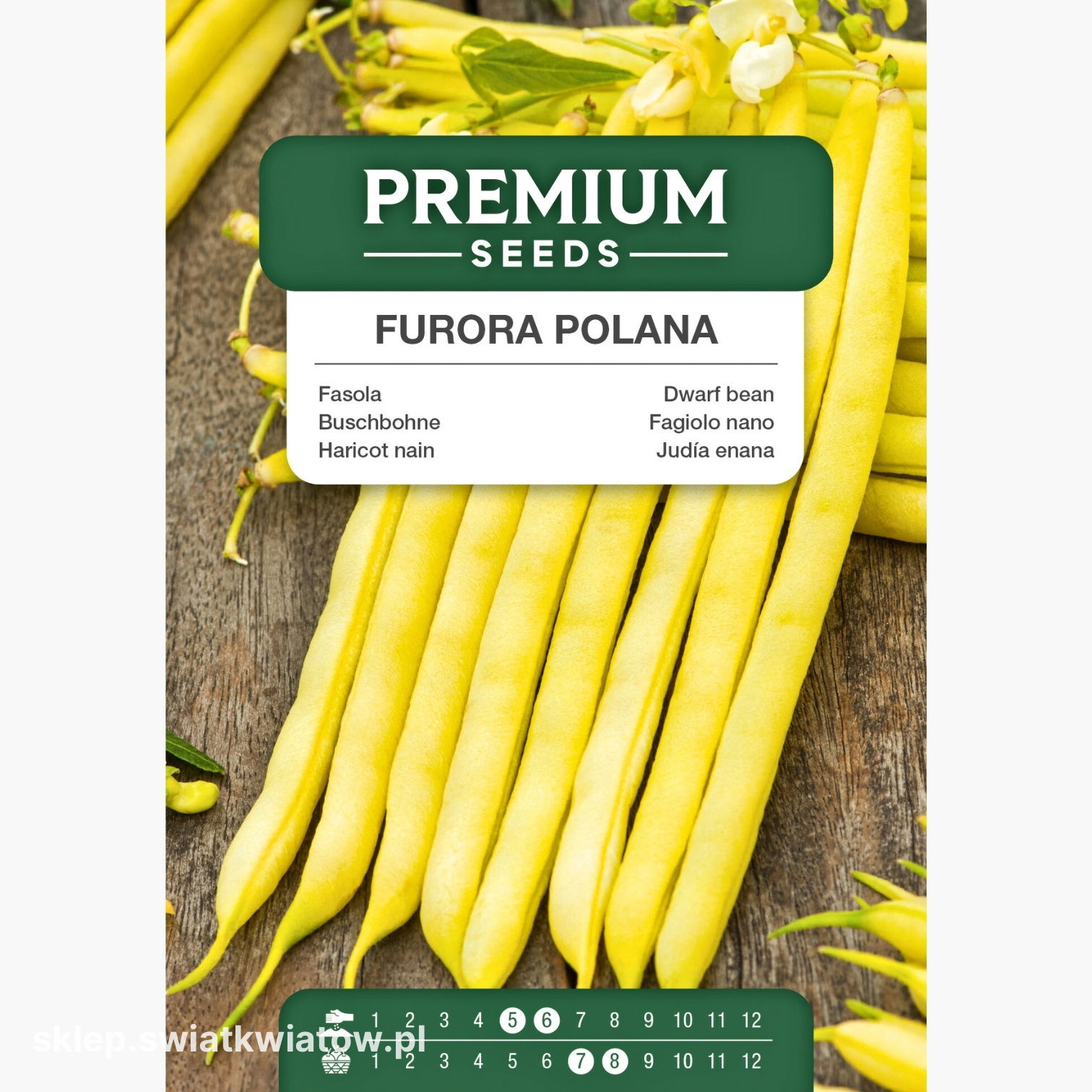 Fasola Furora Polana to wczesna, karłowa odmiana fasoli szparagowej, ceniona za wysoką plenność, smak oraz kompaktowy pokrój, idealny do mniejszych ogrodów. Tworzy proste, żółte strąki długości 12–13 cm, które są bezwłókniste i wyjątkowo delikatne. Odmiana sprawdza się zarówno do bezpośredniego spożycia, jak i do przetworów. Rośliny cechują się podwyższoną odpornością, co przekłada się na łatwiejszą i bardziej satysfakcjonującą uprawę. Nasiona Fasoli Furora Polana są starannie wyselekcjonowane i poddane badaniom jakości, co gwarantuje ich wysoką skuteczność i niezawodność.