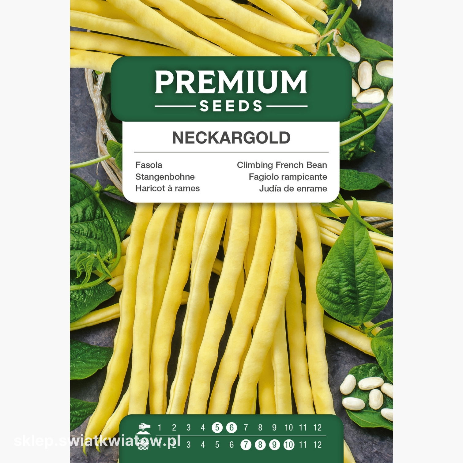 Fasola Neckargold jest gotowa do zbioru od lipca do października. Strąki dojrzewają stopniowo, dlatego należy je zbierać regularnie, aby pobudzić rośliny do dalszego plonowania i utrzymać wysoką jakość zbiorów.