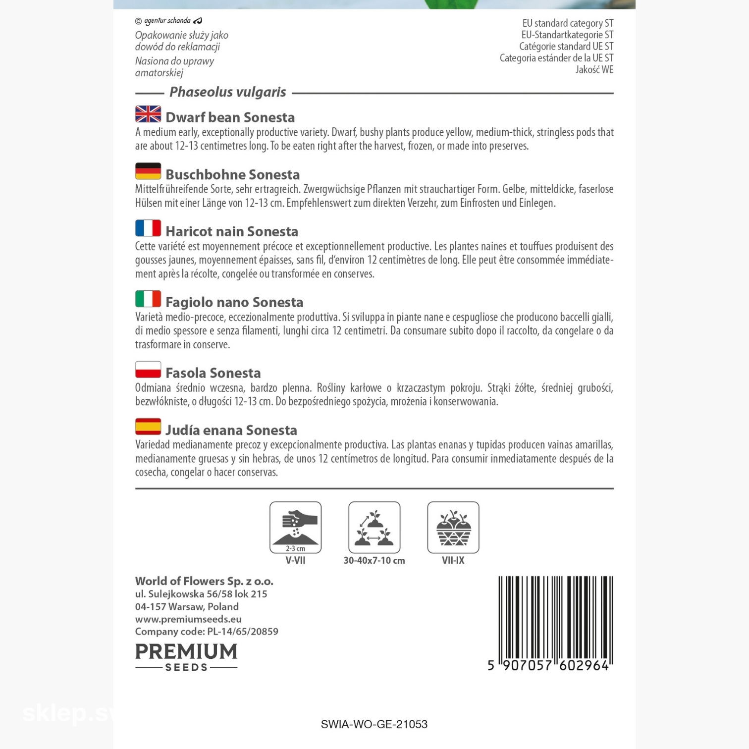 Nasiona Fasoli Sonesta wysiewa się na głębokość 2-3 cm. Taka głębokość pozwala im szybciej kiełkować i tworzyć silny system korzeniowy, dzięki któremu rośliny są zdrowe i lepiej znoszą okresowe susze.
