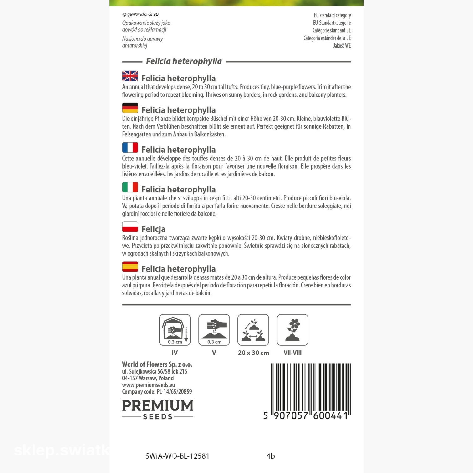 Opakowanie zawiera 0,2 g nasion. Na opakowaniu znajdziesz informacje o zasadach uprawy i terminie przydatności do wysiewu.