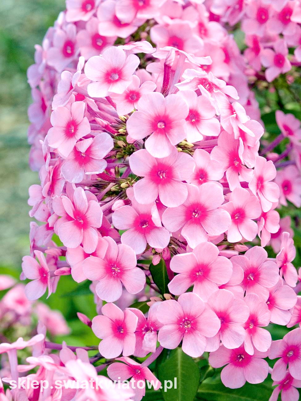 Floks (Phlox) – Płomyk wiechowaty – Neon Flare (Phlox paniculata) to długowieczna bylina, od lat znana i kochana przez miłośników kwiatów ogrodowych. Nie sposób wyobrazić sobie dużej rabaty urządzonej w stylu wiejskim bez wysokich płomyków z obfitymi wiechami soczyście kolorowych kwiatów. Nowe odmiany, takie jak oferowana Neon Flare o przepięknych, dwubarwnych, różowo-białych kwiatach, znakomicie prezentują się także w nowoczesnych aranżacjach z bujnymi błękitnymi kłosami ostróżki ogrodowej, złocistym dzielżanem jesiennym lub odmianami wysokiej jeżówki purpurowej. Prezentowana roślina dorasta do 50-70 cm wysokości, ma wyprostowane, smukłe pędy, zwieńczone od czerwca do września szerokimi, bogatymi kwiatostanami, i kwitnie równie szczodrze w pełnym słońcu, jak i w częściowym zacienieniu.