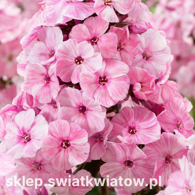 Floks (Phlox) - Płomyk wiechowaty - Picasso nie zawiedzie miłośników ogrodowych bylin. Atrakcyjnie kwitnąca roślina o pięknym zapachu wzbogaci każdą ogrodową kolekcję. Mierzące od 90 do 140 cm kępy zakwitają w lipcu i sierpniu. Pojedyncze, około 3-centymetrowe, promieniste kwiaty skupiają się na końcówkach łodyg w przepiękne, bogate jasne wiechy. Płatki floksa Picasso zdobione są biało-różową mozaiką pasków. Bardzo delikatna kolorystyka i upojny zapach kwiatów, tej wysokiej byliny czyni ją ciekawym materiałem roślinnym. Wysoka dekoracyjność i łatwość uprawy stawiają floksy w czołówce bylin, jakie powinniśmy zasadzić, by cieszyć się kolorowym i mało wymagającym ogrodem. Płomyk wiechowaty Picasso to roślina o uniwersalnym zastosowaniu. Świetnie zapełni tył rabaty, zasłoni nieciekawe ogrodzenie, czy stworzy klimatyczny kącik do wypoczynku. Cudne kwiatostany są idealne na letni bukiet, który wniesie trochę sielskiego klimatu do kuchni lub salonu.