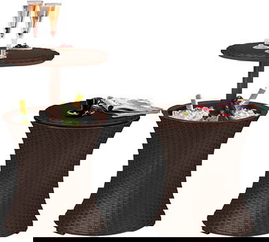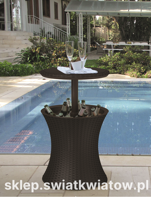 W jednym meblu połączono dwie przydatne funkcje. Złożony posłuży jako poręczny stolik, w jego wnętrzu można przechowywać napoje. Szczelny pojemnik można wypełnić lodem i chłodzić w nim napoje, idealnie sprawdzi się on jako barek. Będzie to niezwykła atrakcja zwłaszcza w upalne dni.