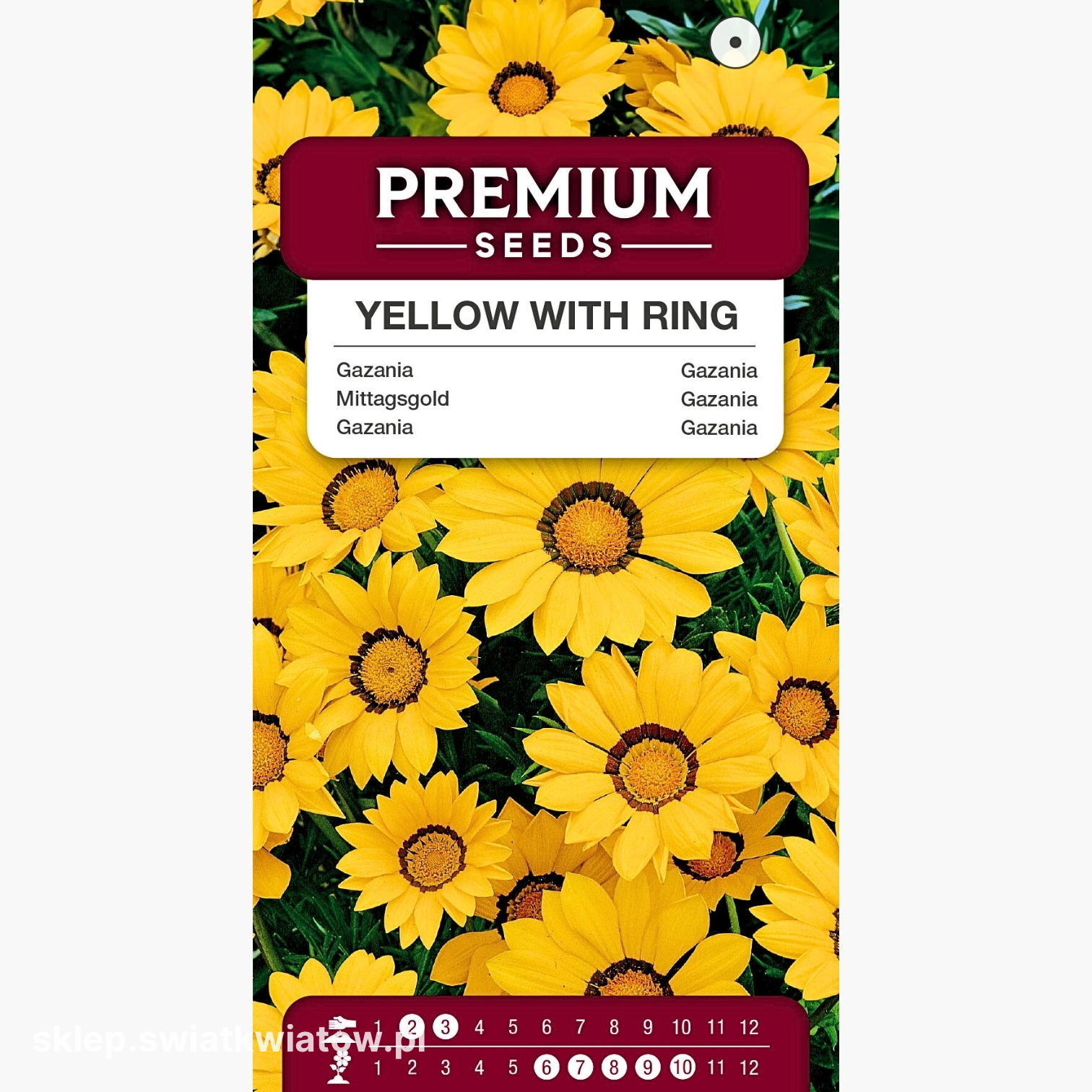 Nasiona gazanii 'Yellow with Ring' należy wysiewać od marca do kwietnia w szklarni lub inspekcie. Po pojawieniu się pierwszych liści właściwych siewki należy przepikować, a w drugiej połowie maja, po ustąpieniu wiosennych przymrozków, przesadzić na miejsce stałe. Roślina kwitnie obficie od lipca do października, wprowadzając do ogrodu żywe kolory przez całe lato i wczesną jesień.