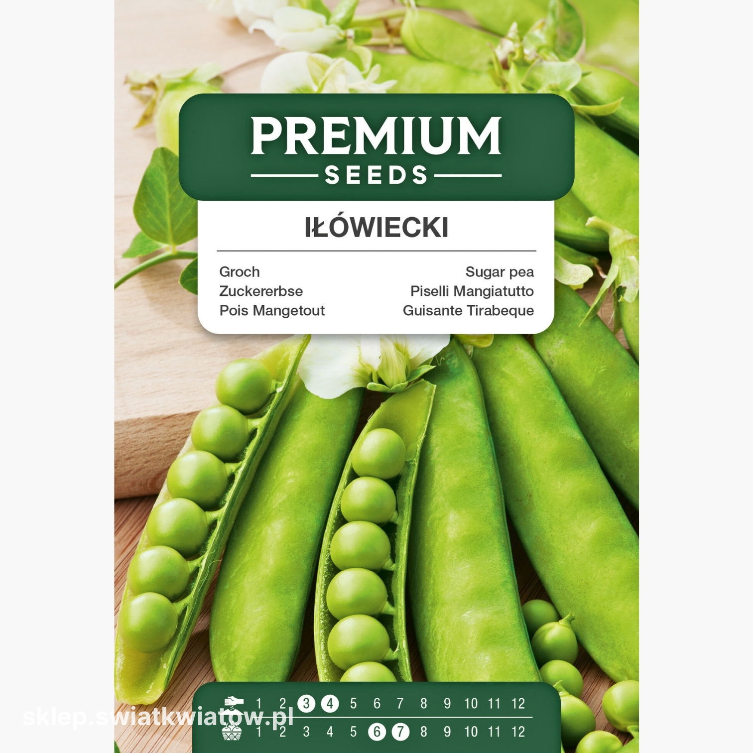 Groch Iłówiecki to wczesna odmiana grochu cukrowego, ceniona za delikatne, jasnozielone strąki pozbawione wyściółki pergaminowej. Strąki są miękkie i słodkie, dlatego można je spożywać w całości, bez łuskania. Groch Iłówiecki doskonale sprawdza się zarówno do spożycia na świeżo, jak i do mrożenia, co pozwala zachować jego walory smakowe na dłużej. Dzięki wczesnemu dojrzewaniu, zbiory możliwe są już w czerwcu, co czyni go wartościowym wyborem do ogrodu warzywnego.
