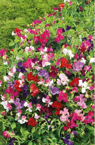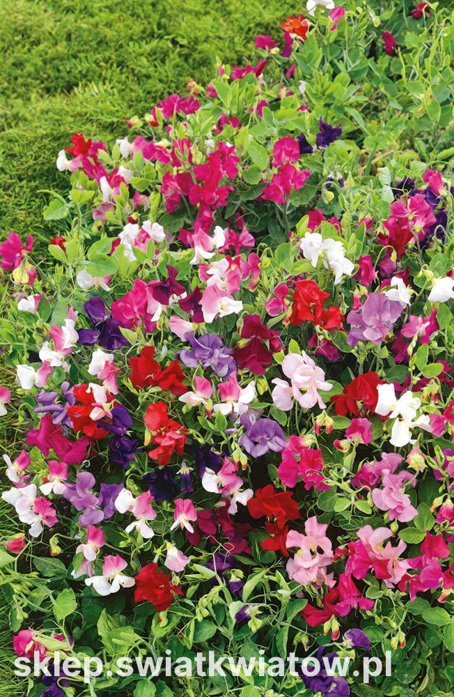 Groszek pachnący Little Sweetheart kwitnie od czerwca do września, gwarantując długotrwałą dekorację ogrodu lub balkonu.
