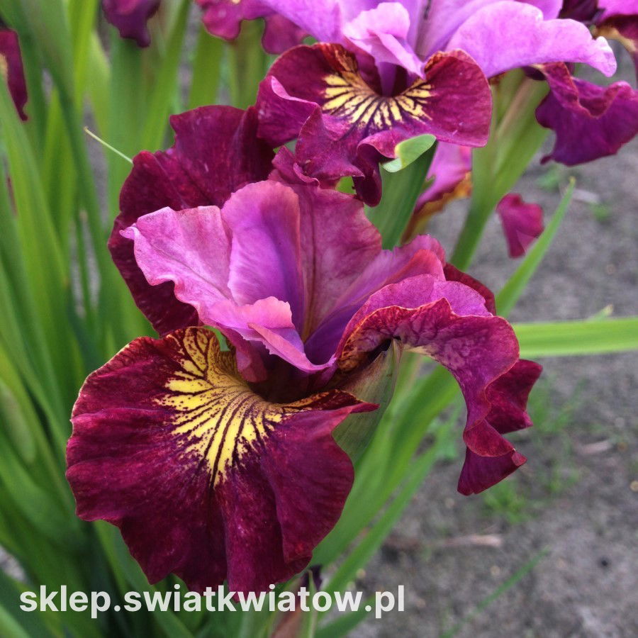 Irys syberyjski Miss Apple to młoda odmiana o zachwycającym wyglądzie kwiatów. Wyróżnia się niezwykłą kolorystyką. Trójbarwny kwiat składa się z jasnofioletowych płatków górnych i bordowych płatków dolnych, na których widnieje przepiękny, złoty wzór. Aksamitna powierzchnia kwiatu nadaje barwom dodatkowej głębi i wyrazistości. Irys syberyjski Miss Apple ma w sobie królewski urok, któremu trudno się oprzeć. Poza okresem kwitnienia roślina zdobi terem zwartą kępą długich, wąskich liści. Oferowany gatunek irysa to roślina do miejsc wilgotnych. Wspaniale prezentują jako roślinność nadwodna czy element nasadzeń naturalistycznych i naśladujących łąki. Irysy syberyjskie nadają się do sadzenia na bylinowych rabatach i kwietnikach, które są systematycznie nawadniane. Te wdzięczne rośliny posadzone masowo, tworzą bajeczne krajobrazy o niezwykłej kolorystyce.