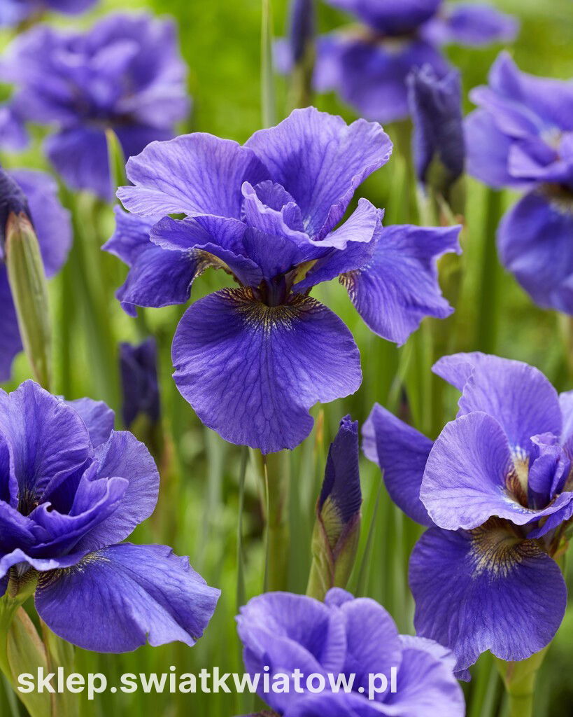 Irys syberyjski Rambunctious wyróżnia się kwiatami o niebiesko-fioletowej barwie, które ukazują się na 90-centymetrowych kępach. Ciekawy, zwarty pokrój trawiastych liści idealnie daje się wpasować do wielu miejsc w przydomowym ogrodzie. Wznoszące się na bezlistnych łodygach kwiaty mają oryginalną, wielopłatkową budowę. We wnętrzu kwiatu, irys Rambunctious skrywa delikatny, żyłkowany rysunek. Pachnące niebieskie główki pojawiają się na przełomie wiosny i lata. Ozdobne z kwiatów i liści kosaćce są roślinami, które chętnie rozgoszczą się na środkowym planie rabaty, na linii brzeżnej oczka wodnego czy naturalistycznym nasadzeniu w parku. Są to jedne z efektowniejszych roślin nadających się do ogrodów wodnych i bagiennych. Irysy syberyjskie pięknie prezentują się w większej grupie, która dobrze wyeksponuje rewelacyjny kolor szlachetnych kwiatów.