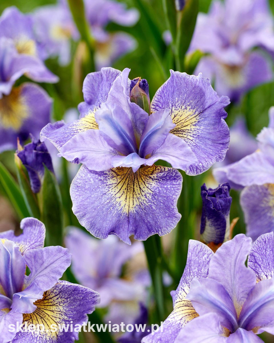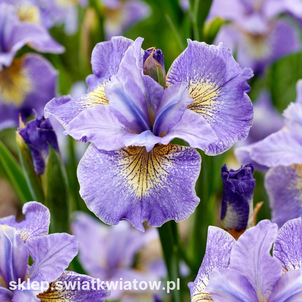 Kosaciec syberyjski, popularnie nazywany irysem, w ślicznej odmianie Reel Cute to roślina wieloletnia. Wydaje piękne kwiaty w jasnych odcieniach niebieskiego i fioletu z wyraźnym żółtym znaczkiem z ciemnym żyłkowaniem. Ułożone prosto do góry liście, tworzą jasnozielone, zwarte kępy. Niezwykle atrakcyjne kwiaty pojawiają się po 3-4 na jednym pędzie. Wysokość dobrze ukorzenionego irysa Reel Cute wynosi ok. 70 cm. Jest to roślina o szerokim zastosowaniu w ogrodach i florystyce. Ich unikatowy charakter bardzo łatwo dopasowuje się do wielu stylów ogrodowych. Kosaciec Reel Cute będzie miłym akcentem jednakowo w wielskim ogródku na działce, ale także dostojną rośliną do ogrodu orientalnego.