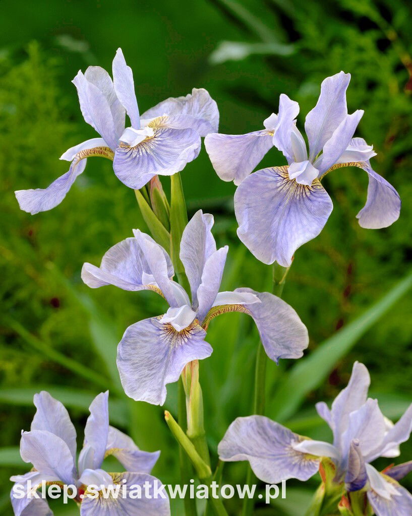 Irys syberyjski Soft Blue jest byliną, której trudno odmówić nieprzeciętnej urody. W zestawieniu z niewielkimi wymaganiami uprawowymi staje się bardzo atrakcyjną propozycją dla wielu miłośników ogrodów. Oferowany kosaciec ma typową dla gatunku budowę kwiatów. Płatki są podzielone na dwie strefy- jedna wznosi się do góry, druga opada łukowato do dołu. Atutem Soft Blue jest przepiękny, błękitny kolor. Na szerszych, dolnych działkach kielicha zaznaczona jest bladożółta plamka o żyłkowanym wzorku. Na osiągających 100-120 cm okrągłych łodygach rozkwitają 3-4 kwiaty. Ich wysyp przypada na okres od czerwca do lipca. Kosaciec syberyjski Soft Blue jest rośliną długowieczną, dobrze zimująca w gruncie. Przy odpowiedniej pielęgnacji i odmładzaniu kęp to rewelacyjna ozdoba ogrodu przez długie lata.