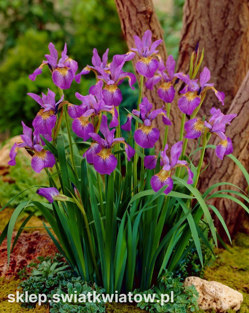 Uroczy irys syberyjski Sparkling Rose przypadnie do gustu wielbicielom minimalistycznego wymiaru piękna. Delikatne kwiaty o wyraźnej, niebiesko-fioletowo-różowej barwie są wzbogacone akcentem żółci z białą obwódką. Atrakcyjność kwiatów podnosi charakterystyczne dla kosaćców żyłkowanie. Mocniejsze u nasady smużki, subtelnie rozmywają się na dalszym planie płatków. Rosnący wysoko, do 90 cm irys Sparkling Rose wydaje kwiaty w maju-czerwcu. Maksymalny efekt dekoracyjny dają nasadzenia większej ilości kęp, które tworzą zjawiskowe łany. Po okresie kwitnienia irysy ozdabiają rabaty i kwietniki plamą gęsto rosnących, trawiastych liści, o strzelistym pokroju. Jest to roślina tolerancyjna na różne warunki, ale najczęściej występuje jako materiał do sadzenia w miejscach wilgotnych. Doskonale rozwija się nad stawami, w rowach, na mokrych nasadzeniach naturalistycznych – latem może być to nawet płytka woda.