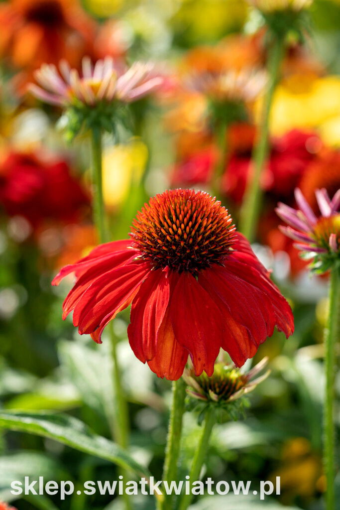 W zestawie znajduje się 50 sztuk sadzonek korzeniowych jeżówki Sombrero Salsa Red. Na etykiecie zostały podane podstawowe informacje o roślinie i jej uprawie.
